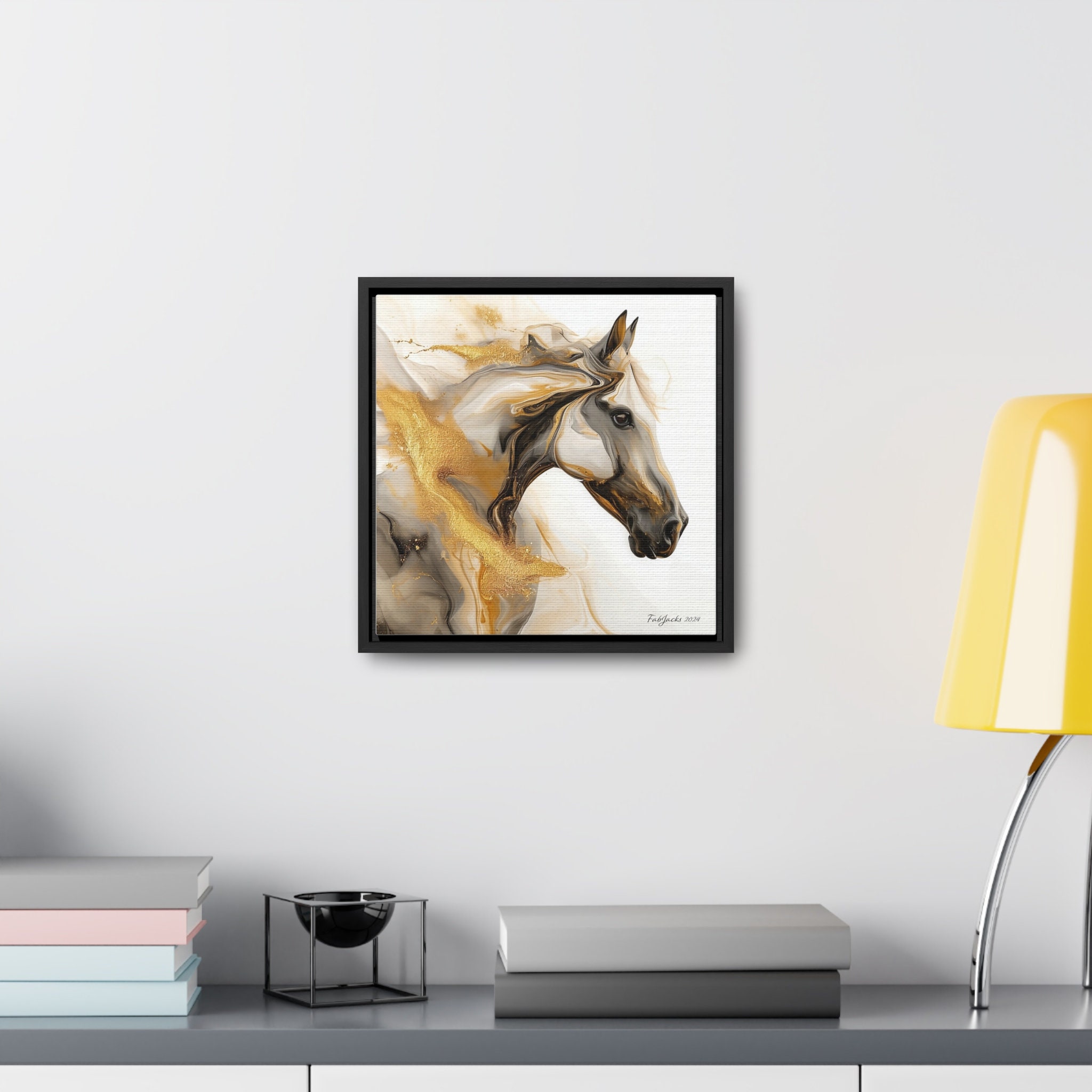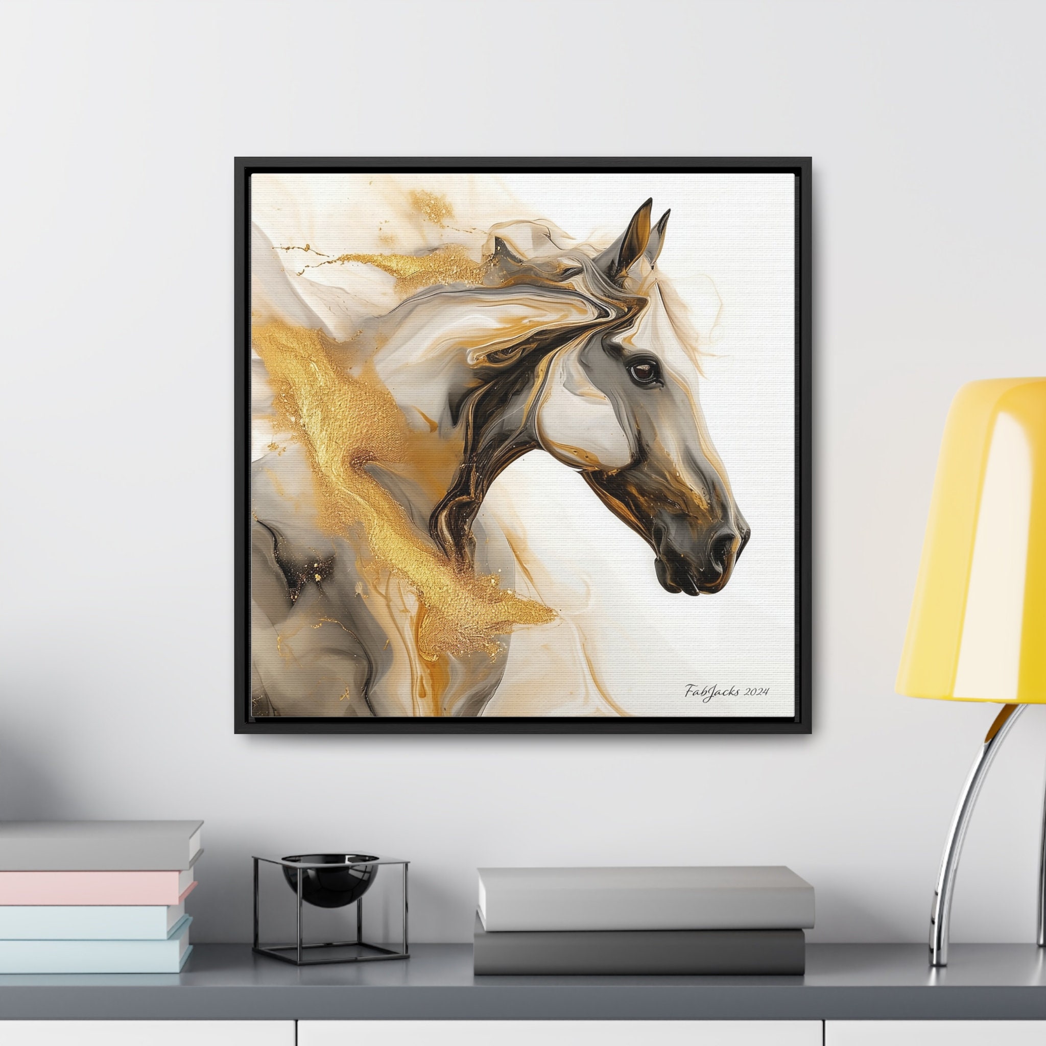 Framed Gallery Canvas, Equine Elegance original horse art printed on high quality home decor. Great gift for horse lovers.