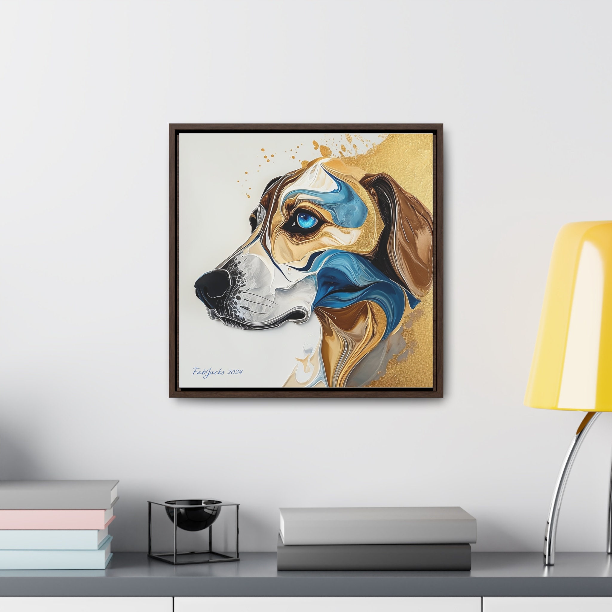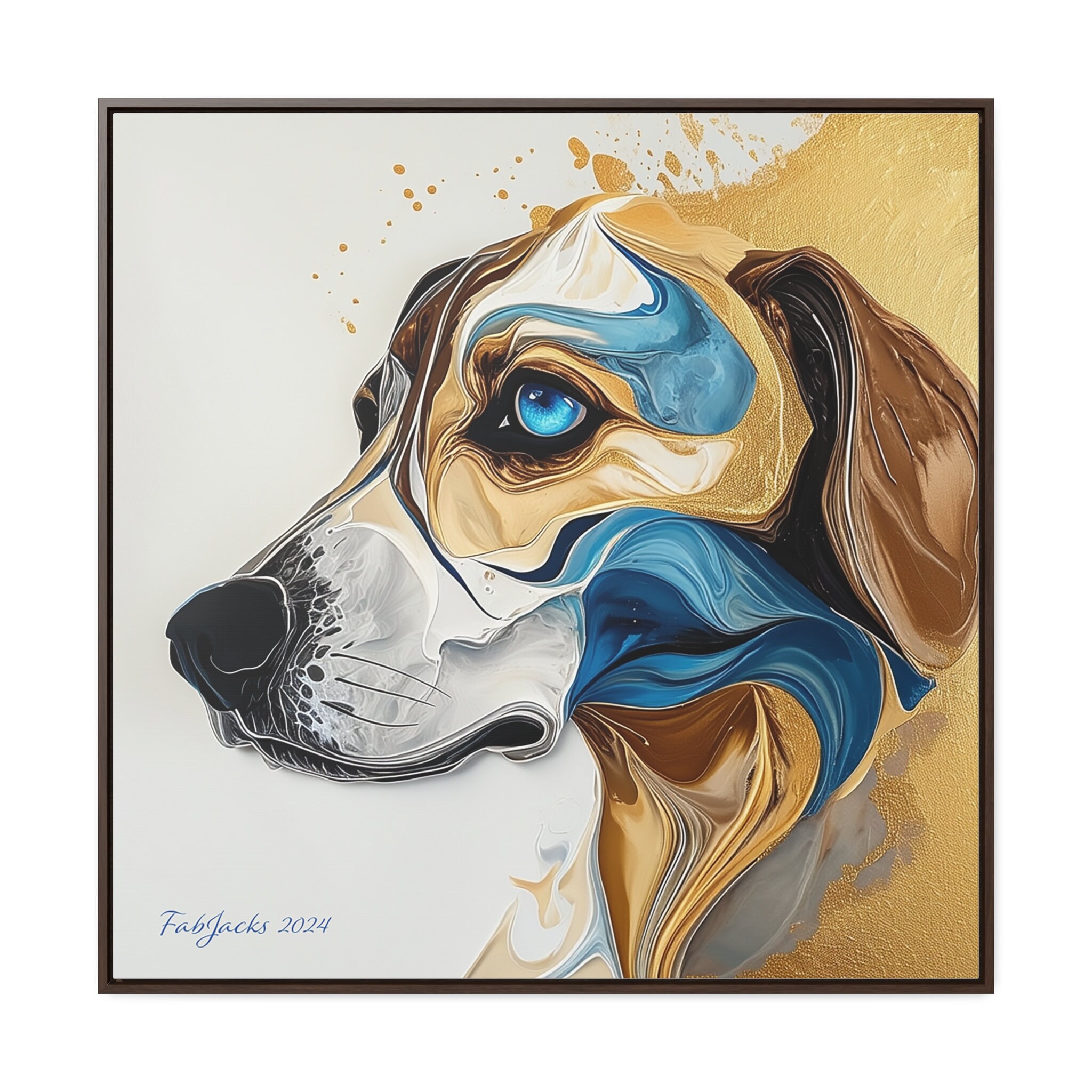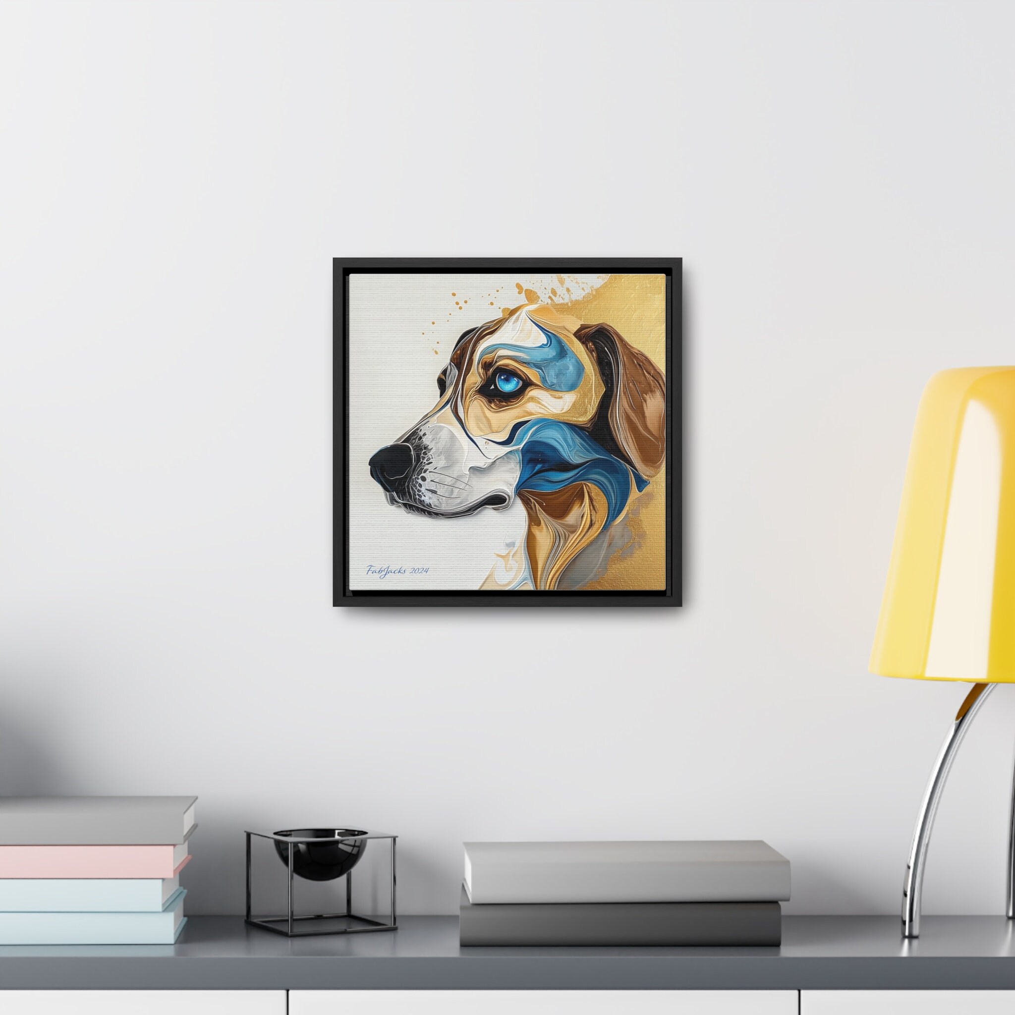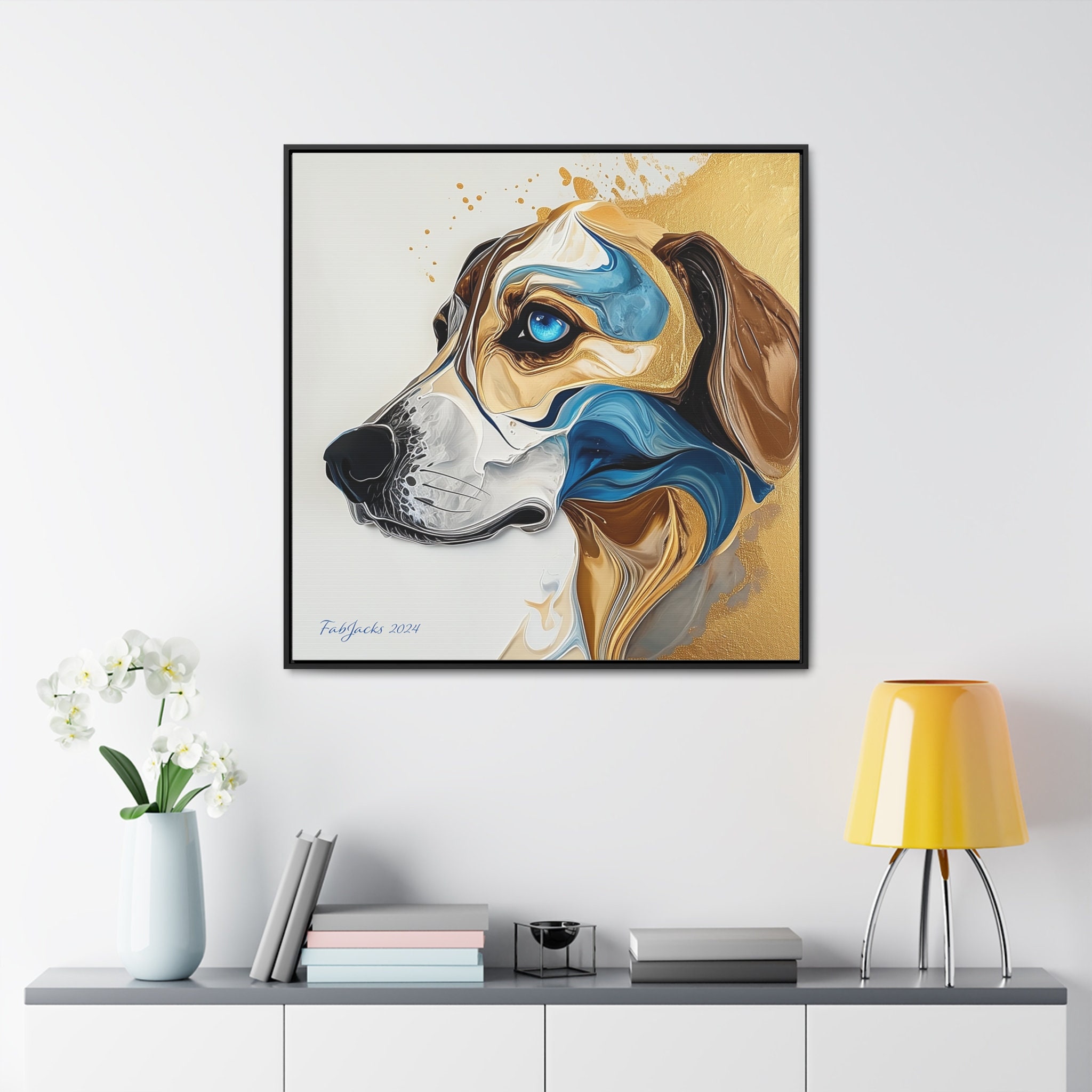 Framed Gallery Canvas, Beagle Blues original dog art printed on high quality home decor. Great as a gift for pet parents and dog lovers.