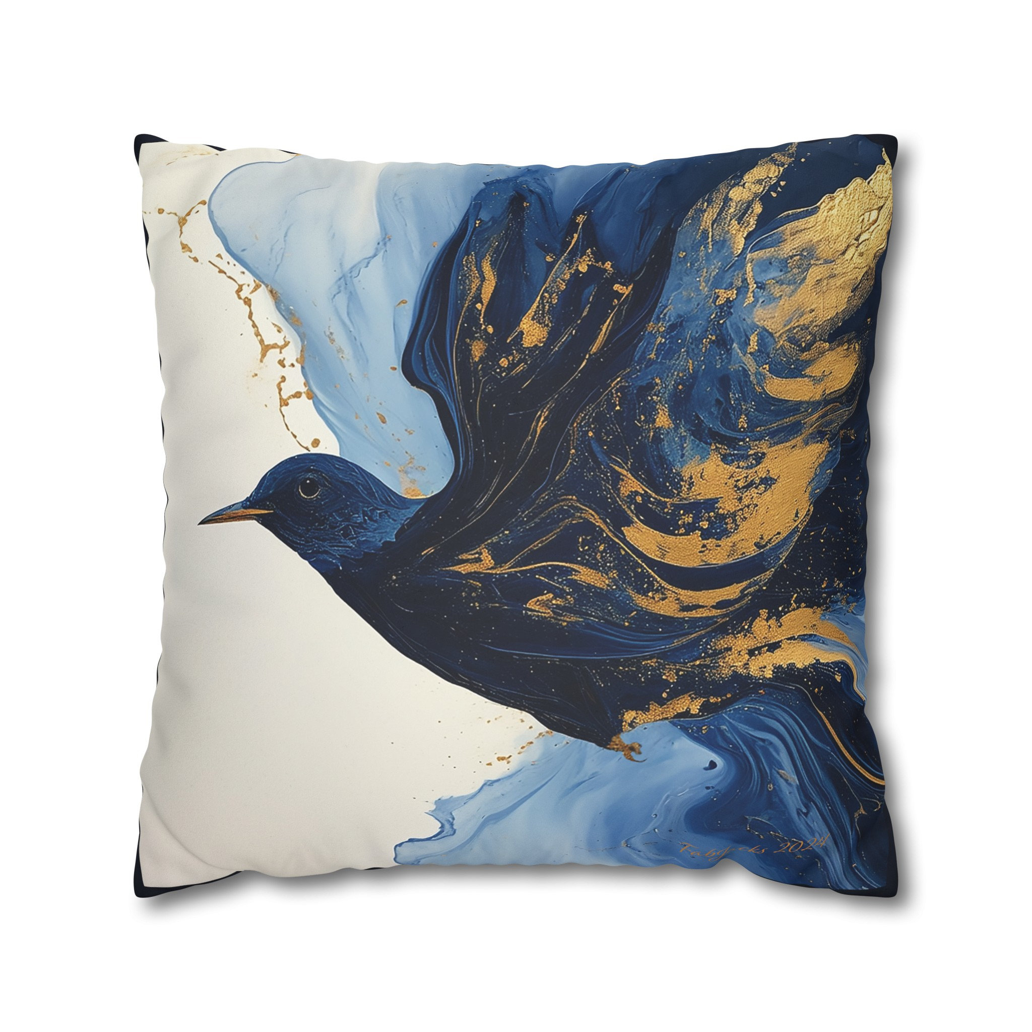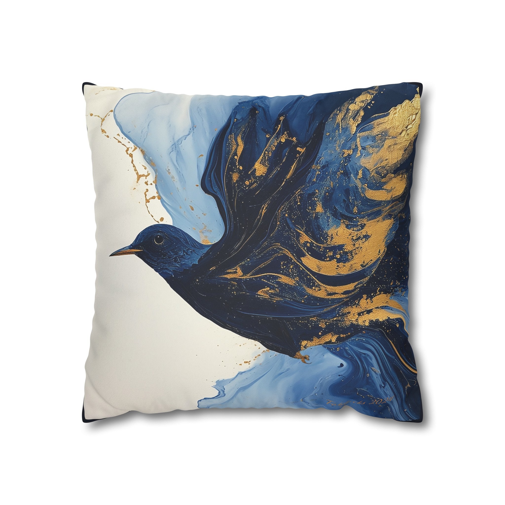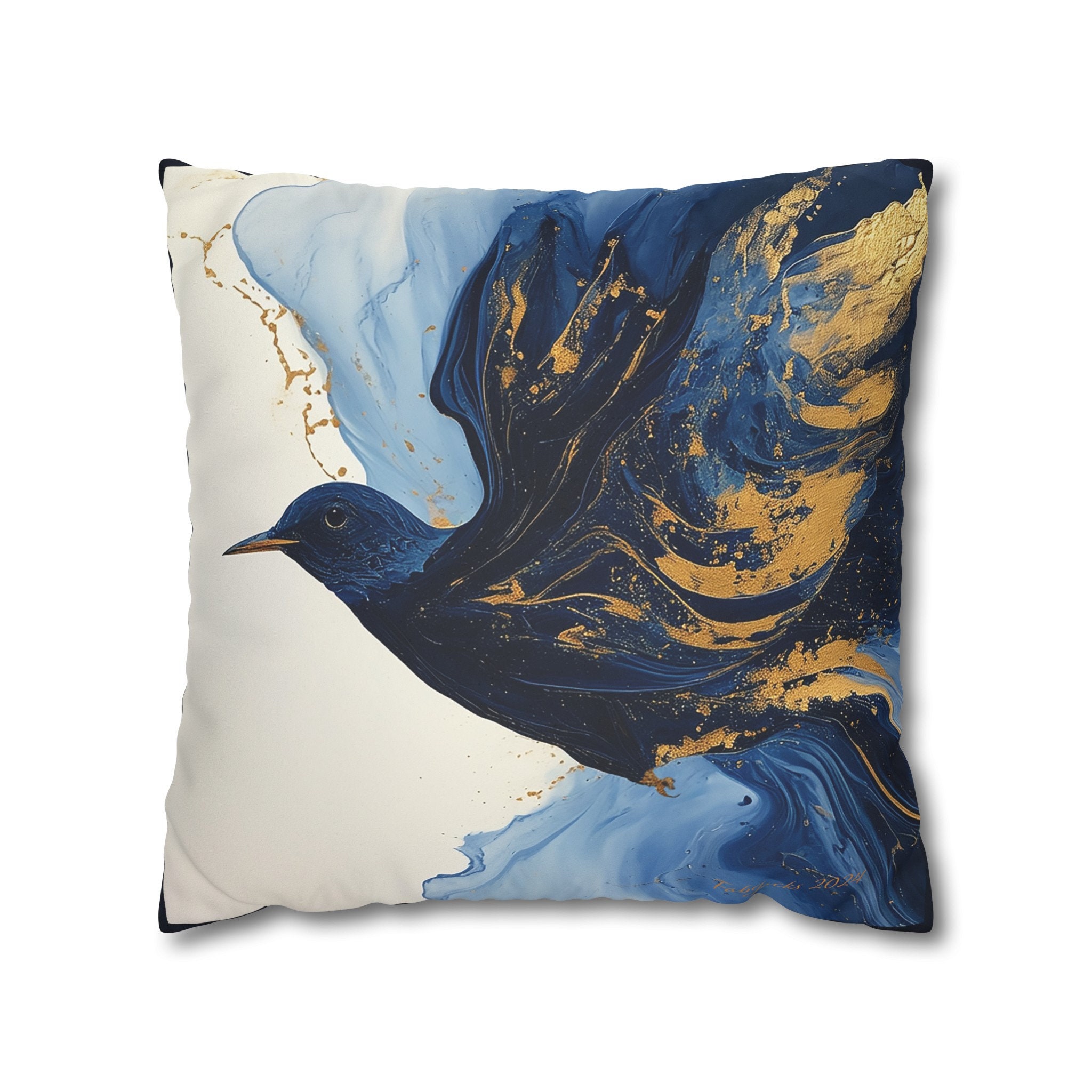 Skyward Faux Suede Pillowcase, original art, blue with golden accents printed on high quality home decor. Great gift for bird lovers