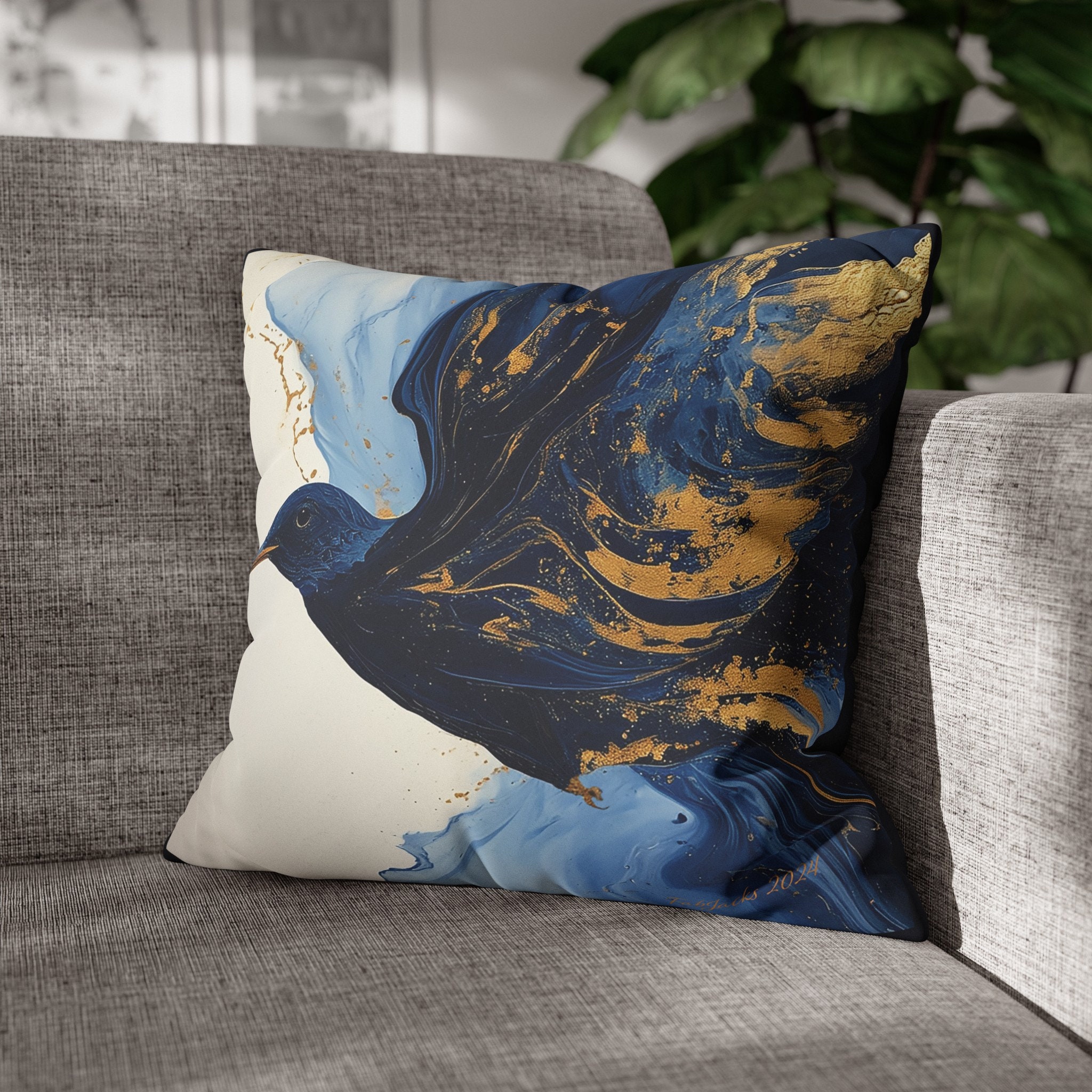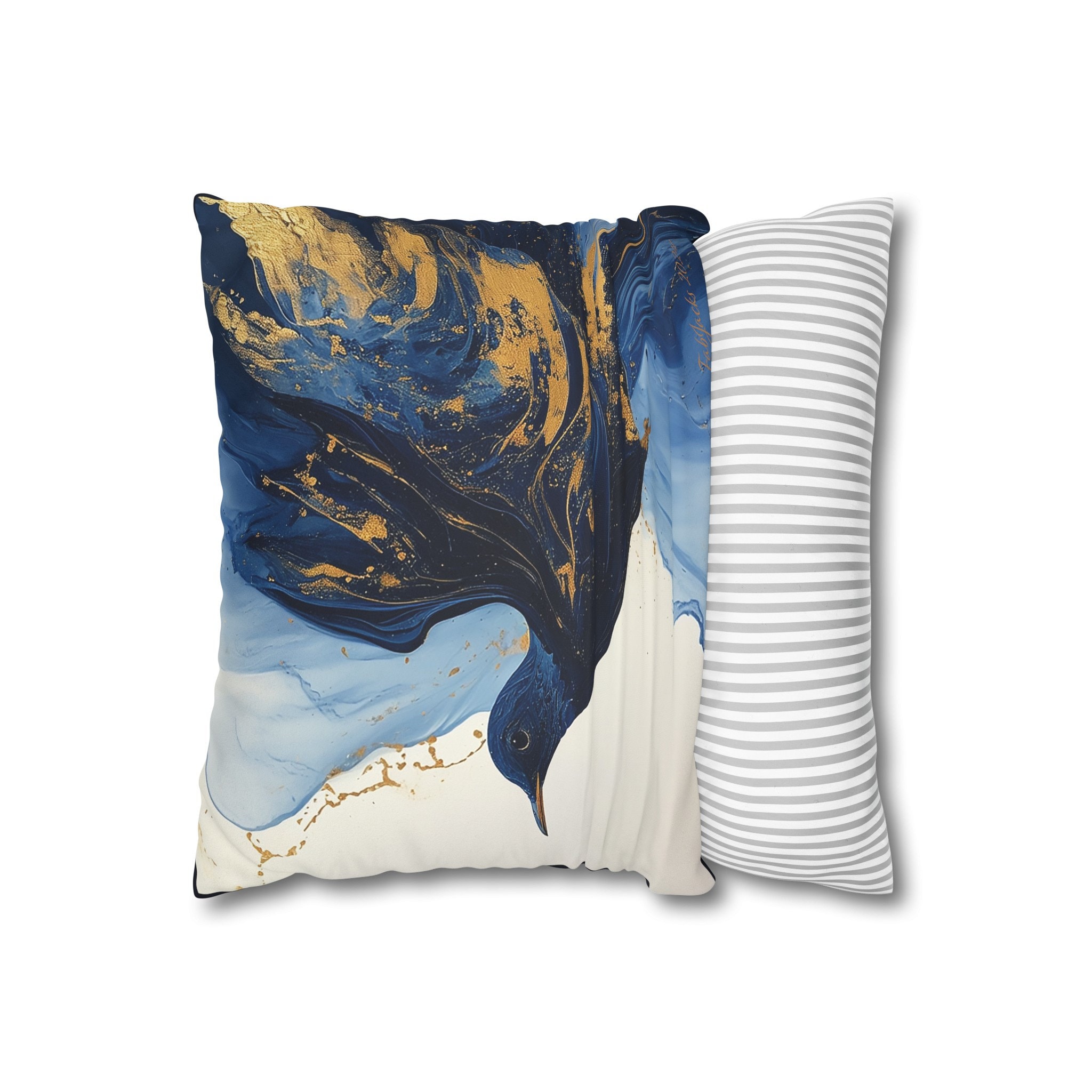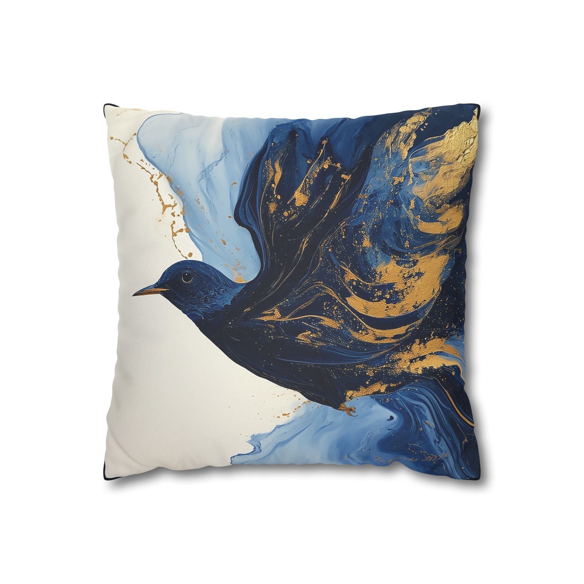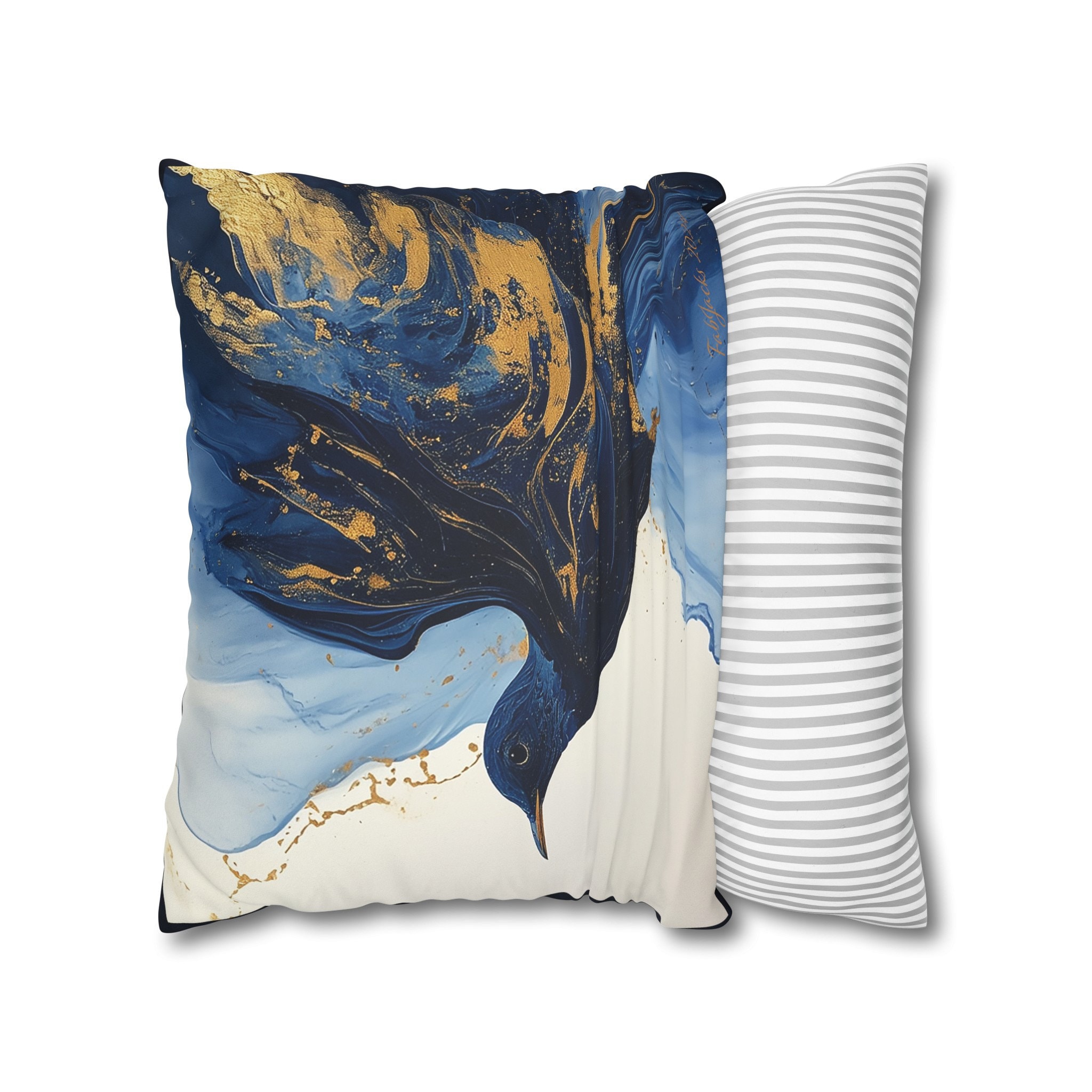 Skyward Faux Suede Pillowcase, original art, blue with golden accents printed on high quality home decor. Great gift for bird lovers