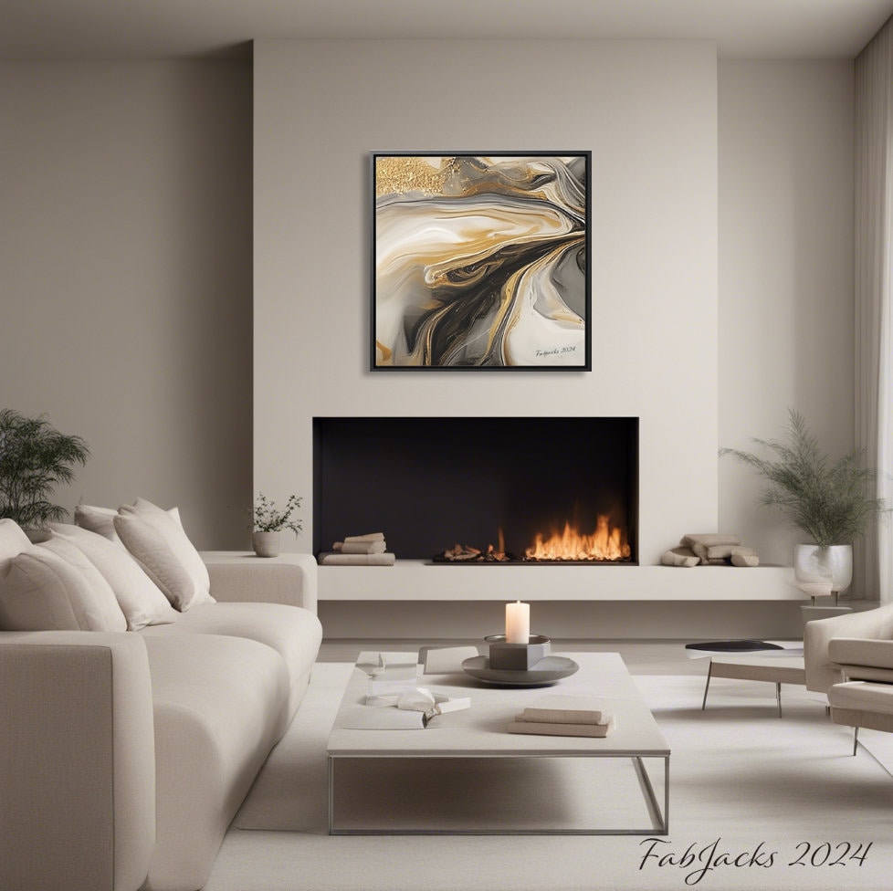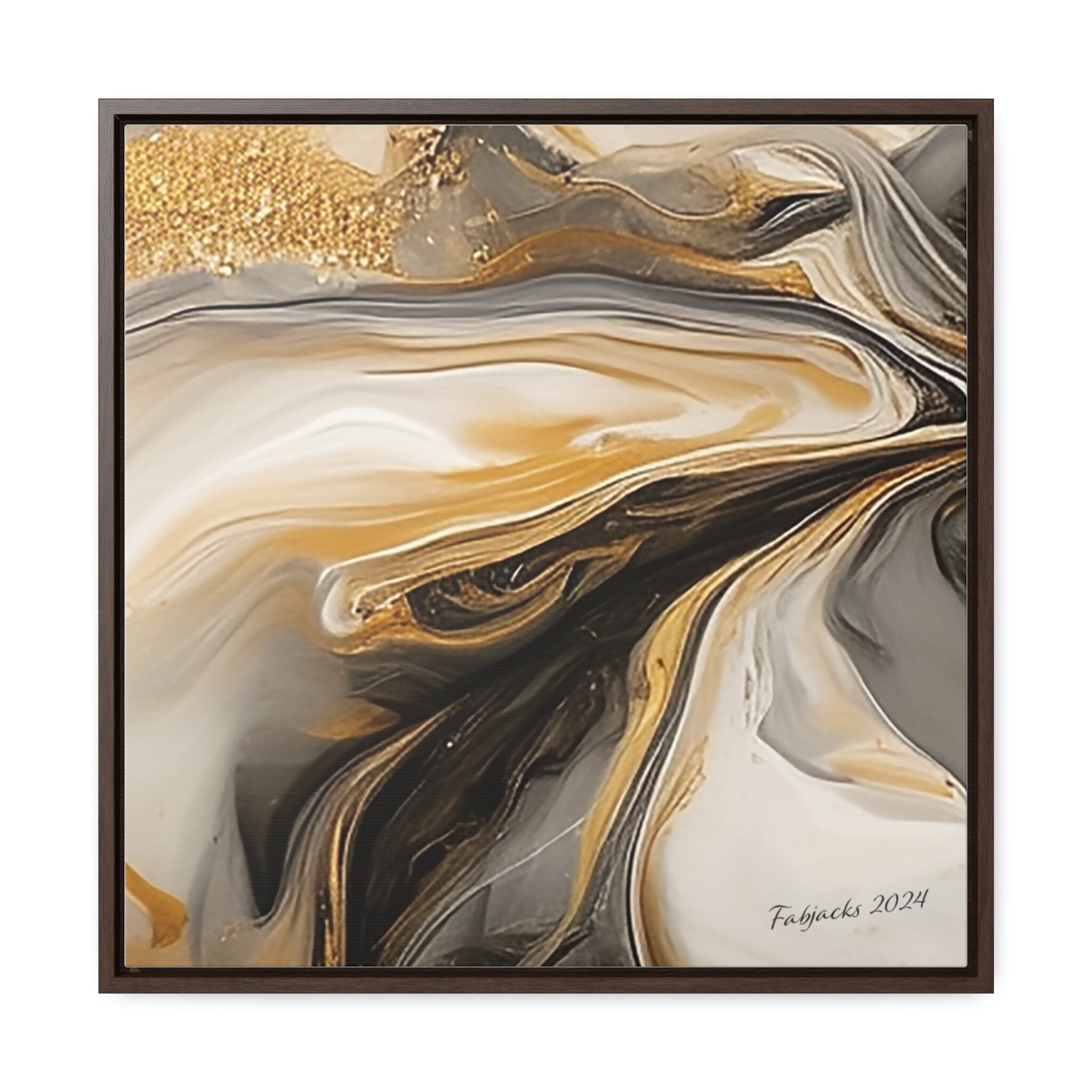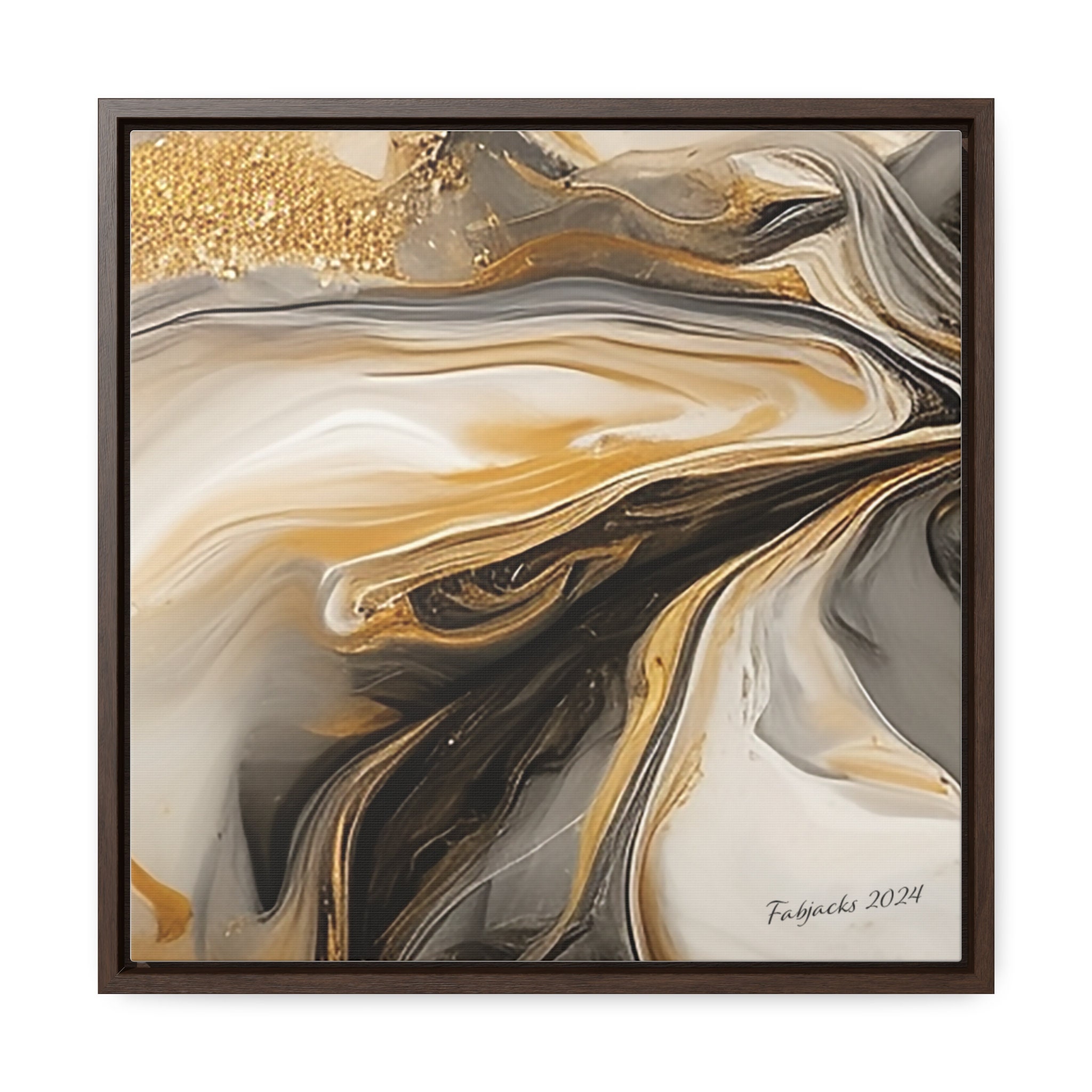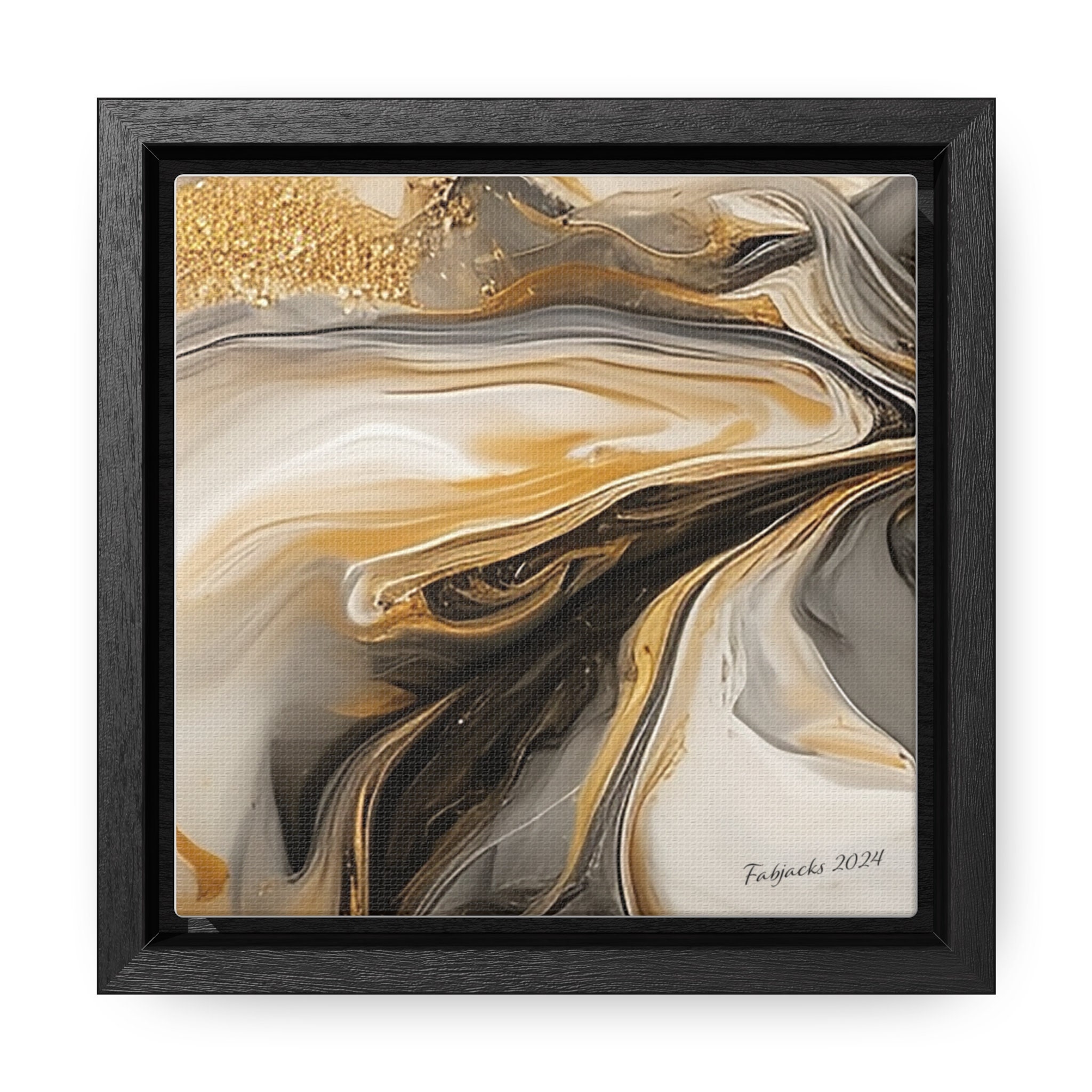Embrace the beauty of the Equine Elegance collection in soft beige, grey, and honey tones with gold accents, created in the fluid art style. Let your personality be reflected on the artwork adorning your walls. This square gallery wrapped canvas print will always look as tight and flat as the day it was made. Every frame is built with a solid face to support the canvas and prevent deforming. Available in multiple sizes, comes in walnut and black frame options.
