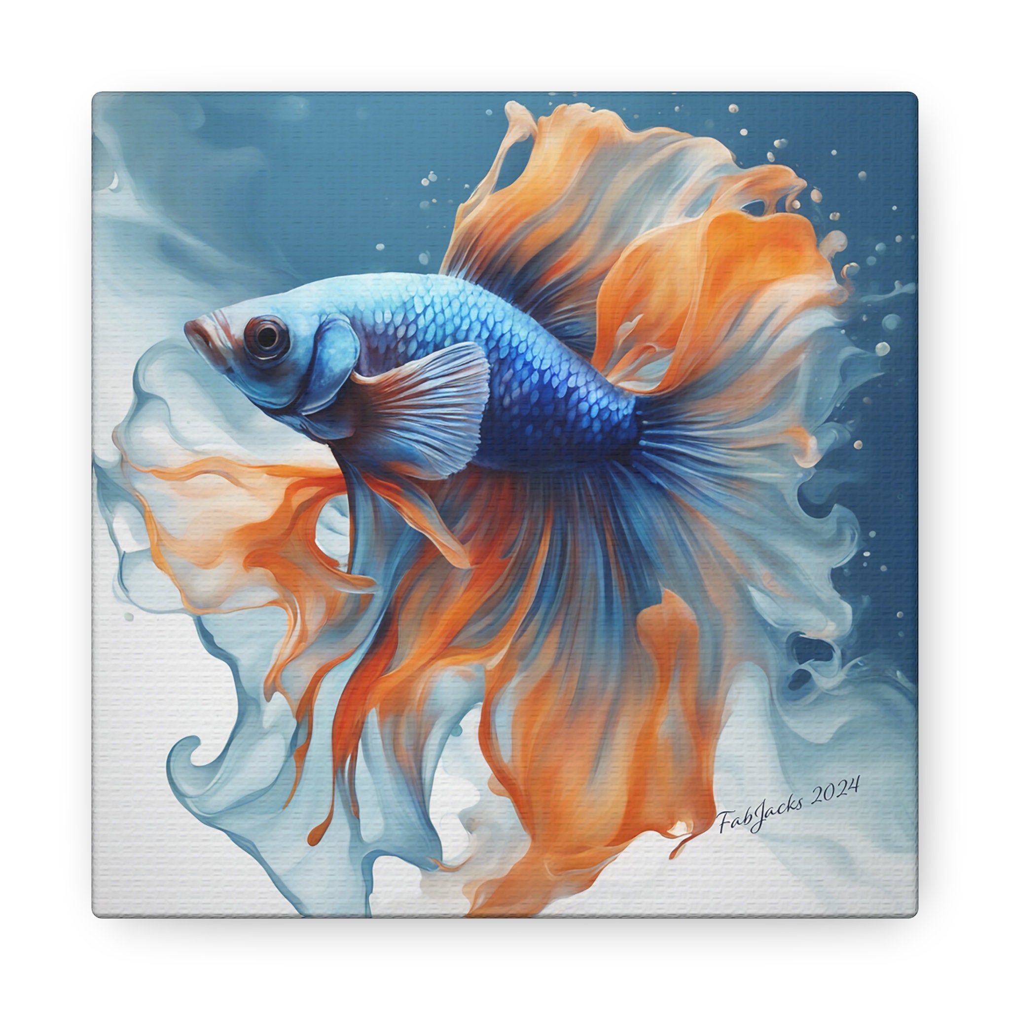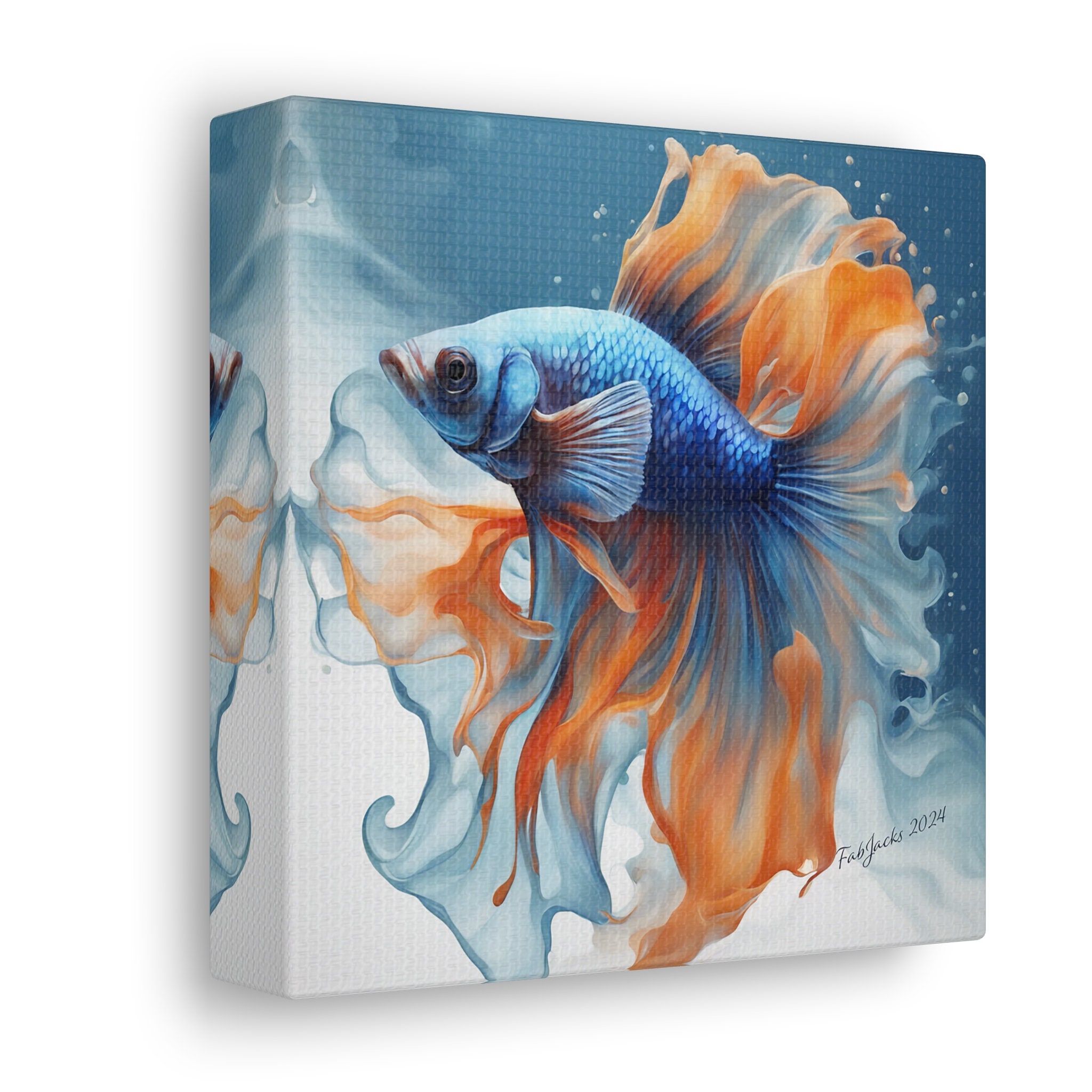 Dive into a world of vibrant hues and fluid elegance inspired by the mesmerizing beauty of blue and orange Beta fish. Uplift any room's decor with art that's printed on top-quality canvas gallery wraps. Each wrap is made with finely textured, artist-grade cotton substrate which displays the art in outstanding clarity and detail. Available in multiple sizes, these closed back canvases are built with a patented, solid support face and are excellent for indoor use.