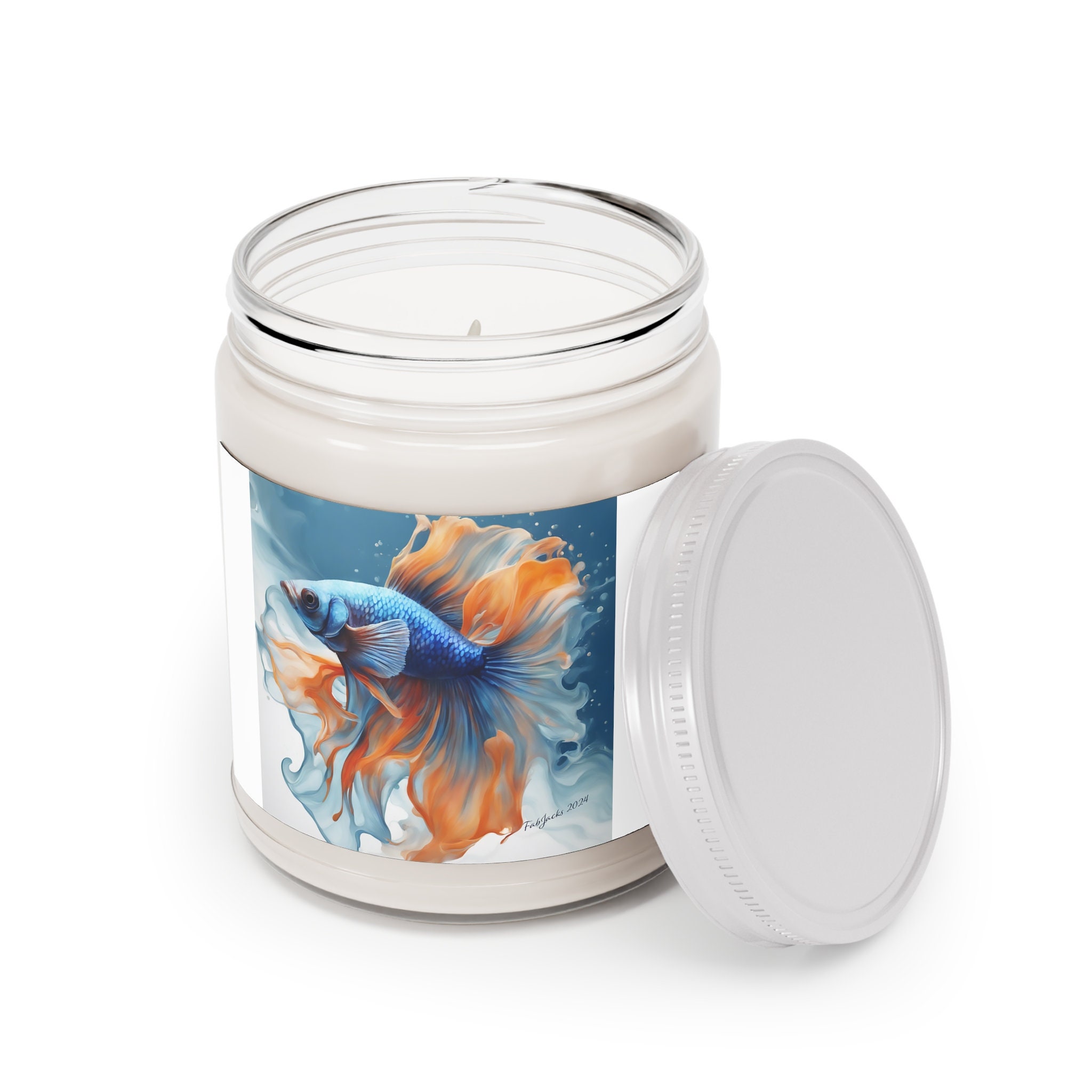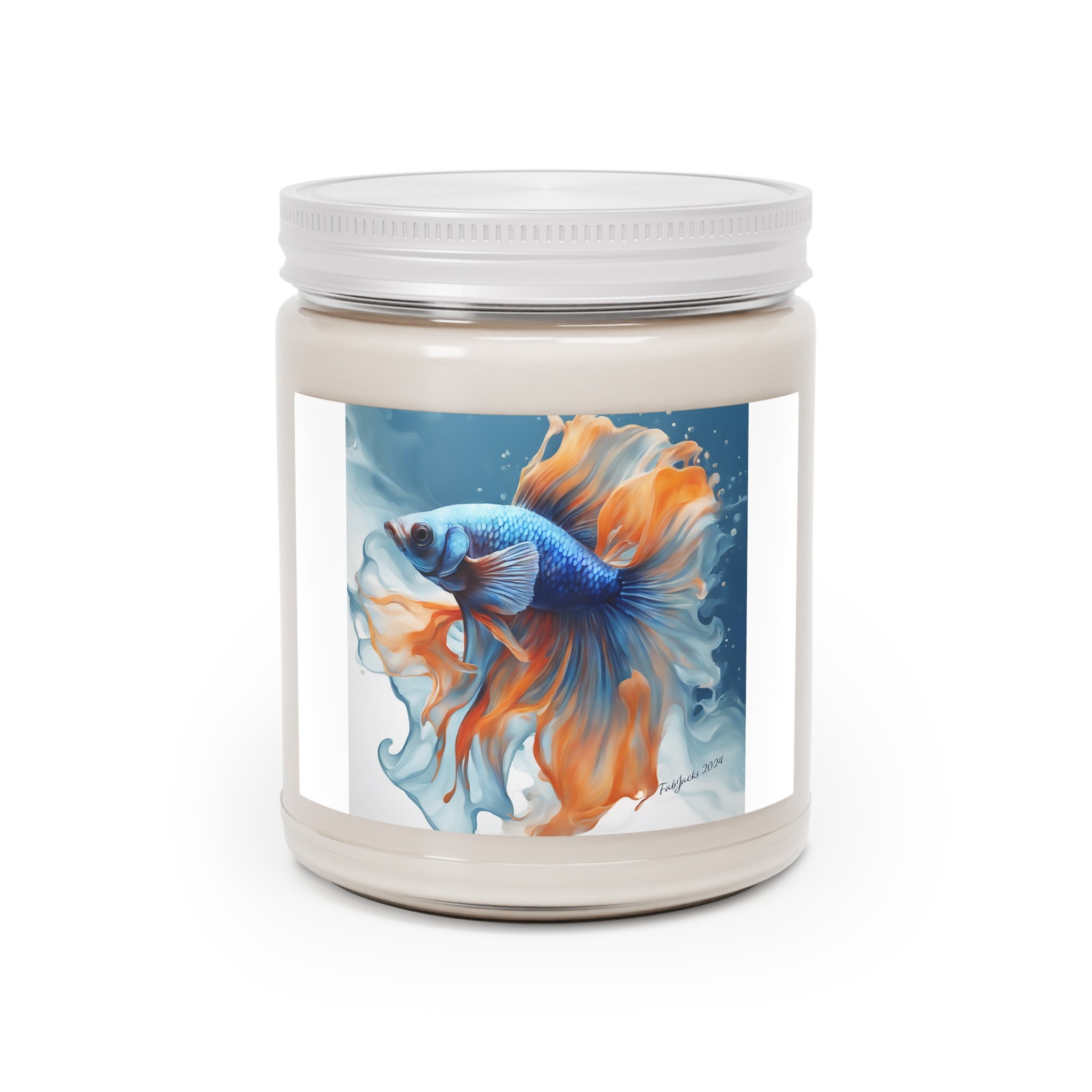 Dive into a world of vibrant hues and fluid elegance inspired by the mesmerizing beauty of blue and orange Beta fish. Made to soothe long and stressful days! The candle itself is made 100% with a natural soy wax blend and cotton wick. Choose between fragrances such as Vanilla Bean, Comfort Spice, Sea Breeze, Unscented, Fresh Balsam, Spiced Pumpkin Ginger, Pink Grapefruit and Eucalyptus Lavender Herb.