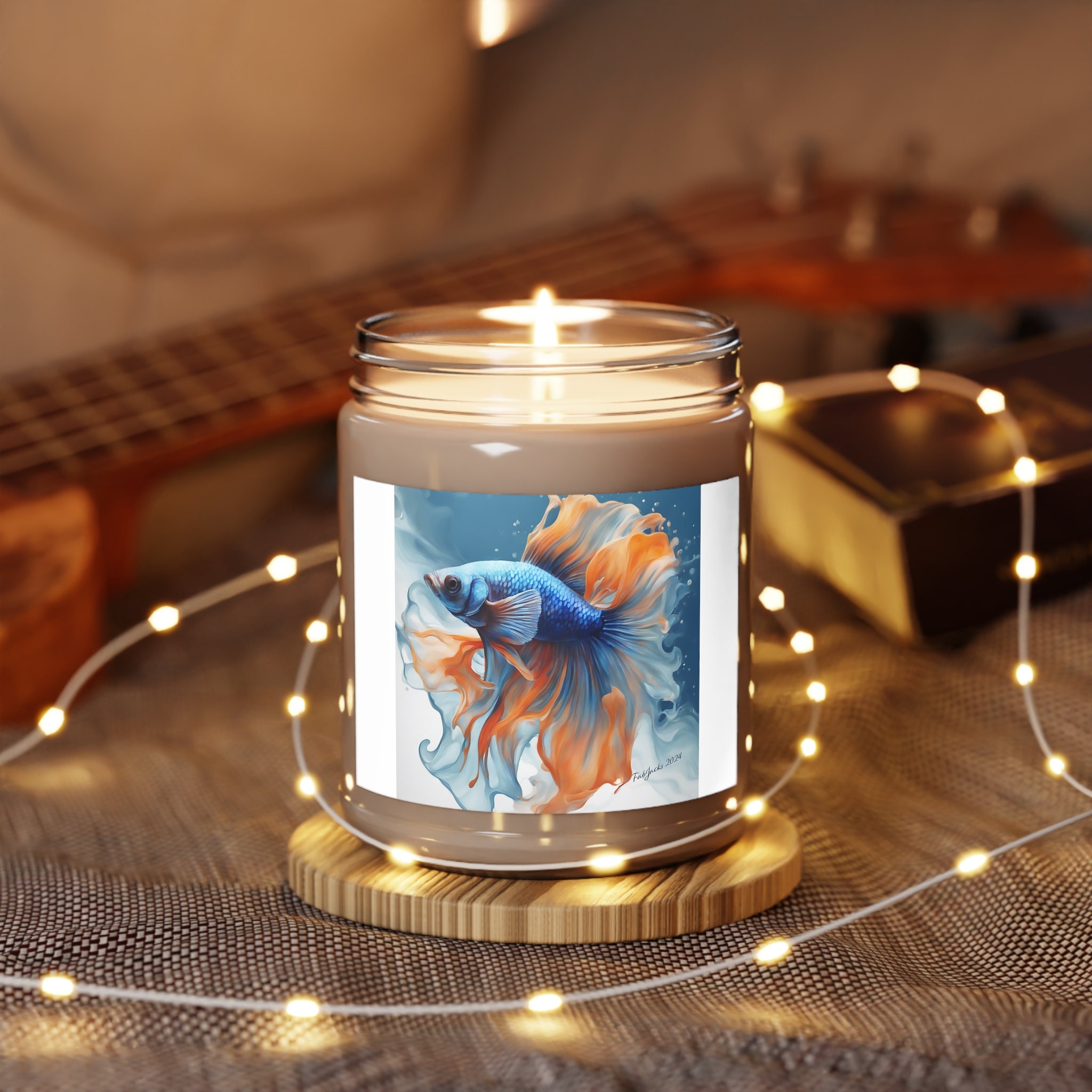 Betta Bliss II Scented Candle, original beta fish fluid art printed on high quality home decor. Great as a gift for beta fish lovers.