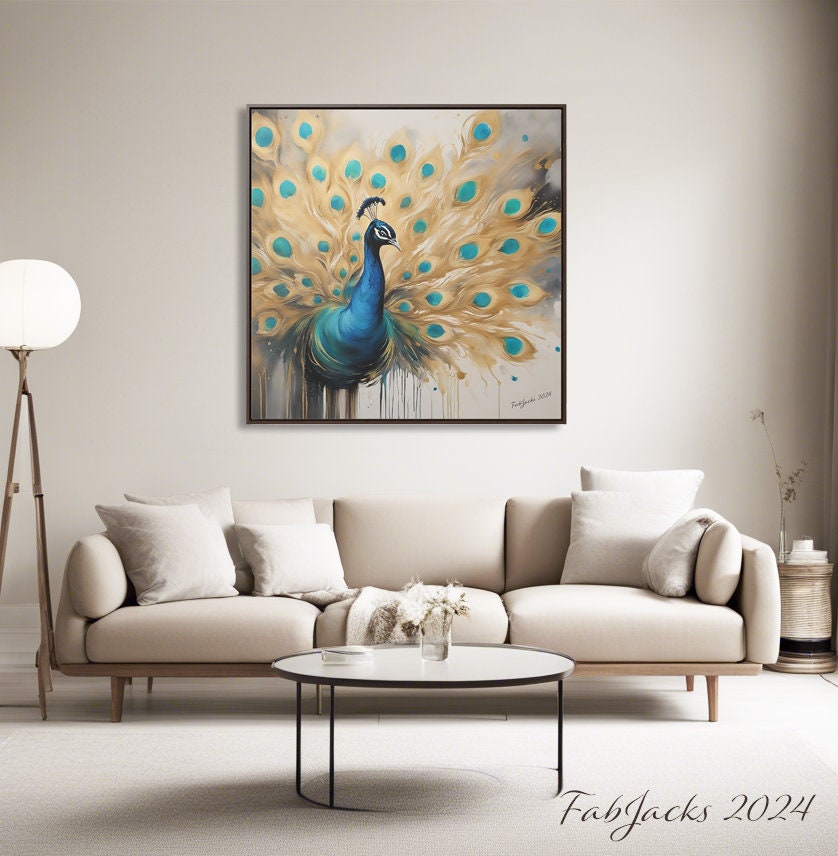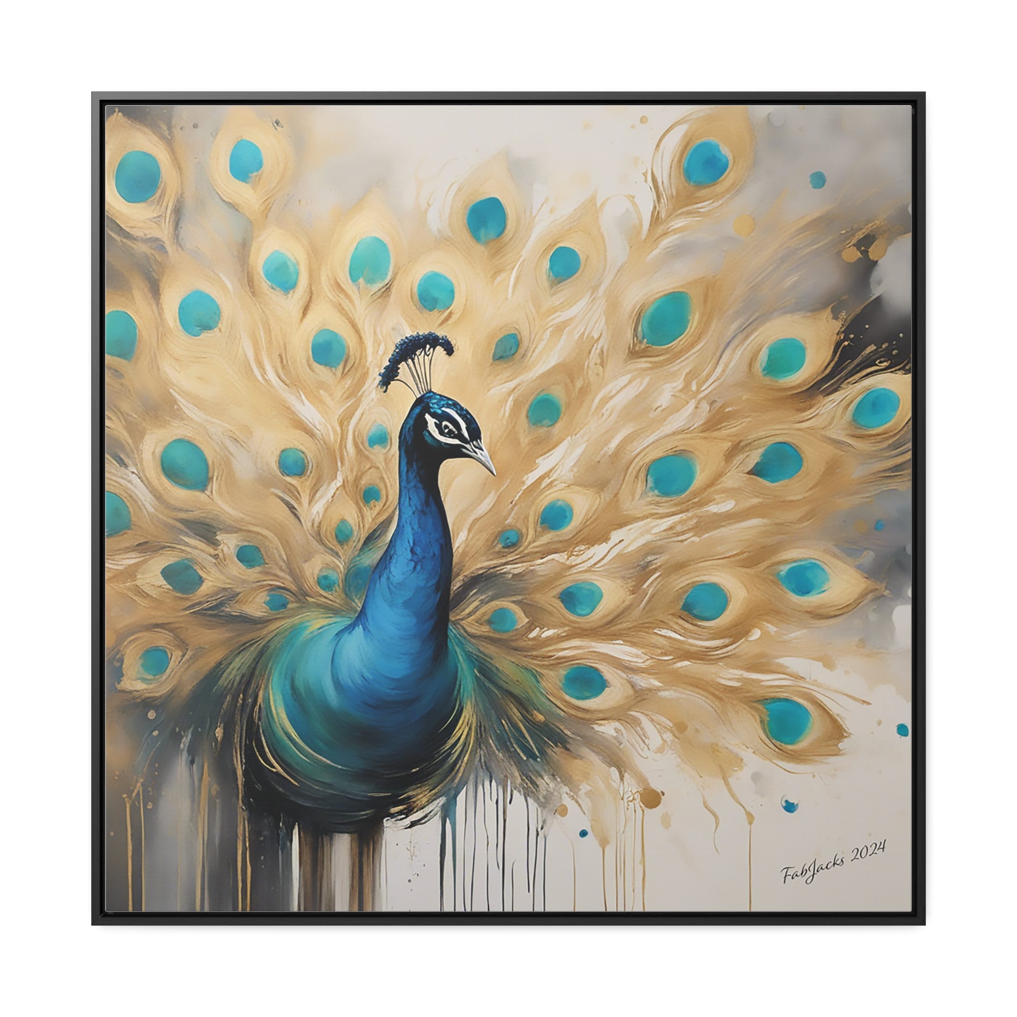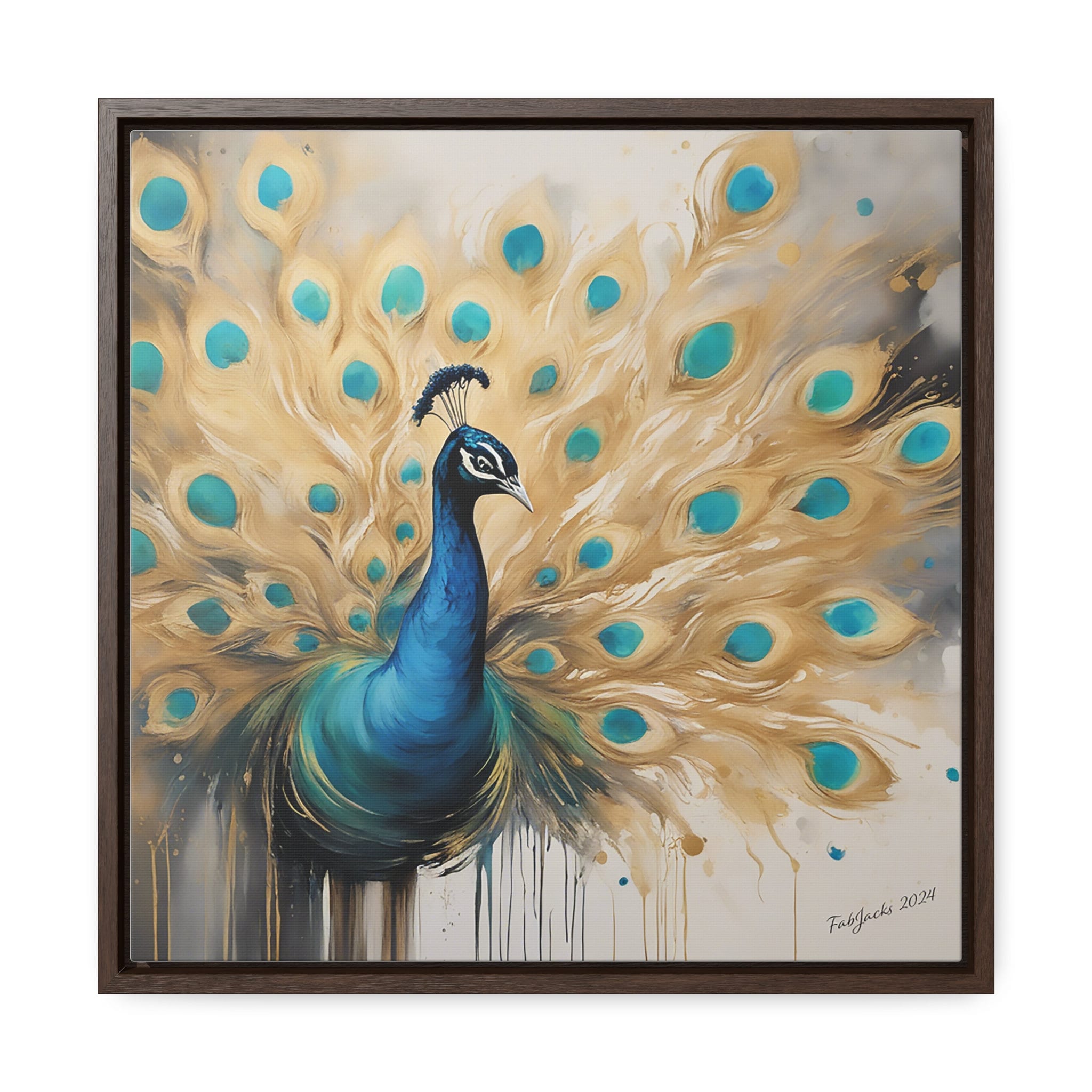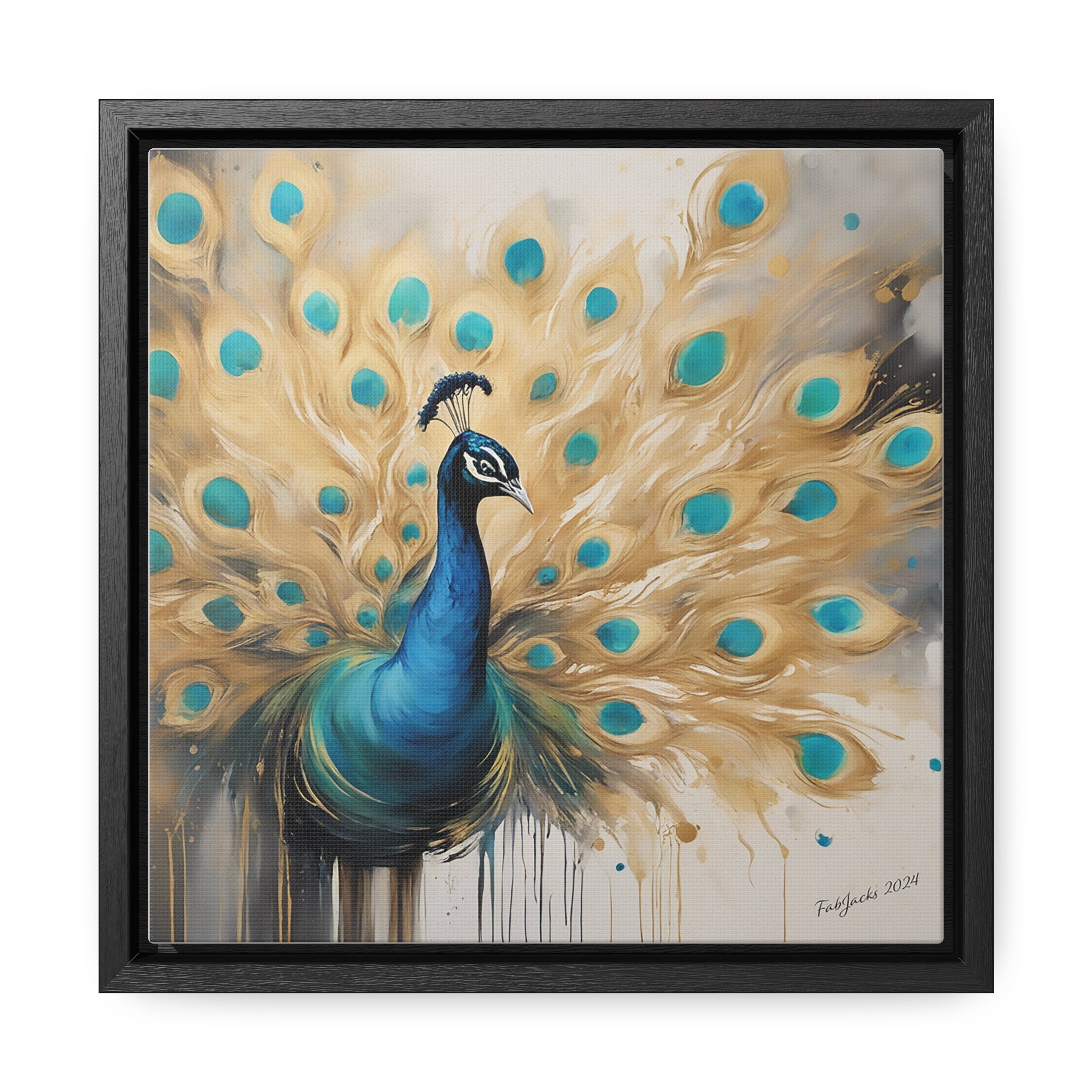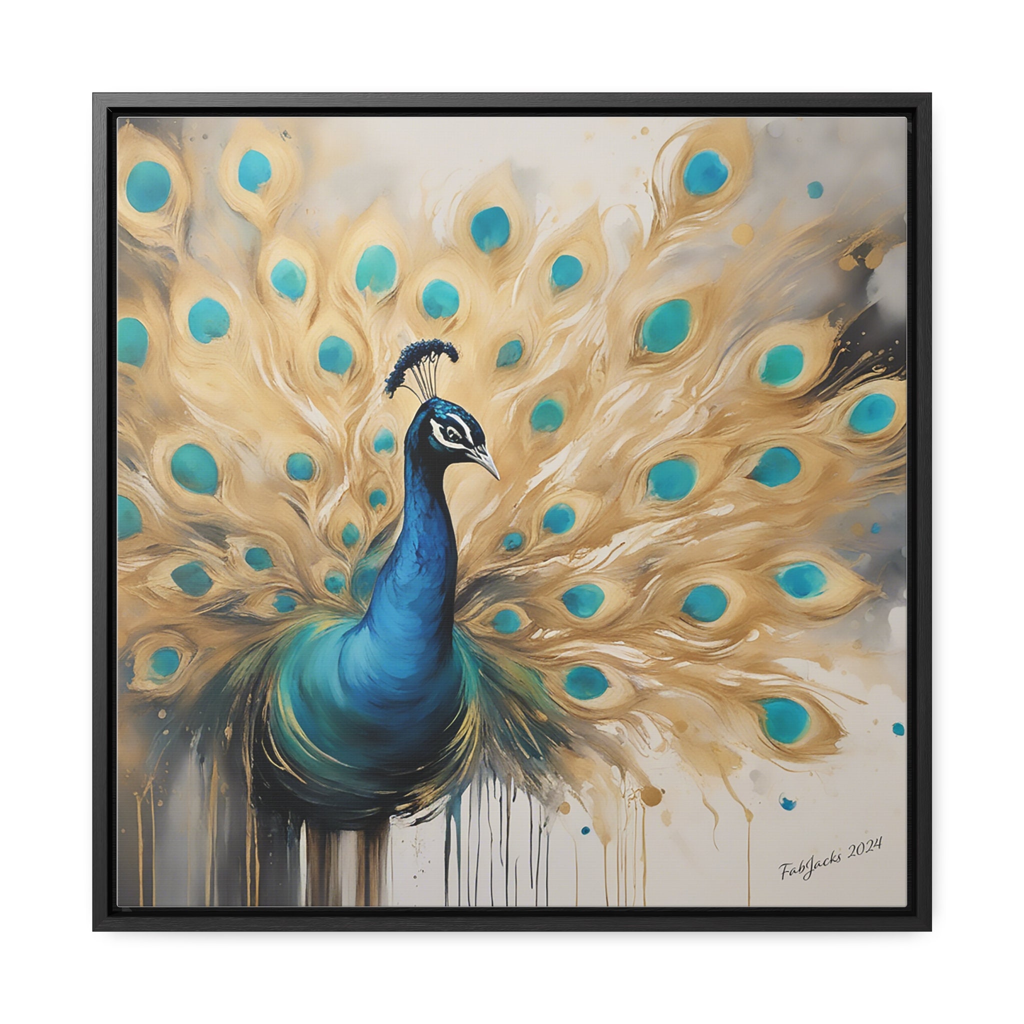 Ethereal Plumage Framed Gallery Canvas, original abstract art printed on high quality home decor. Great gift for Peacock lovers.