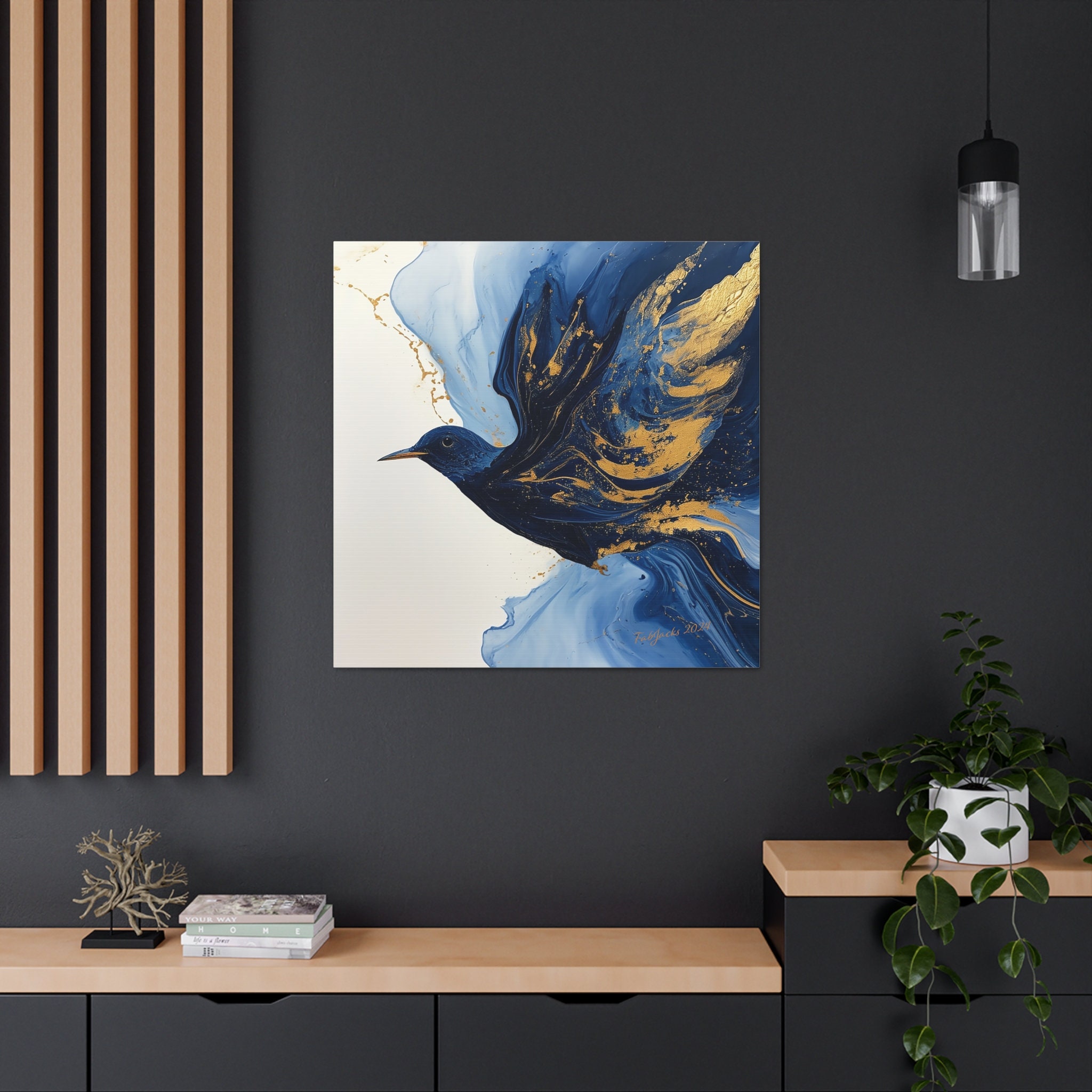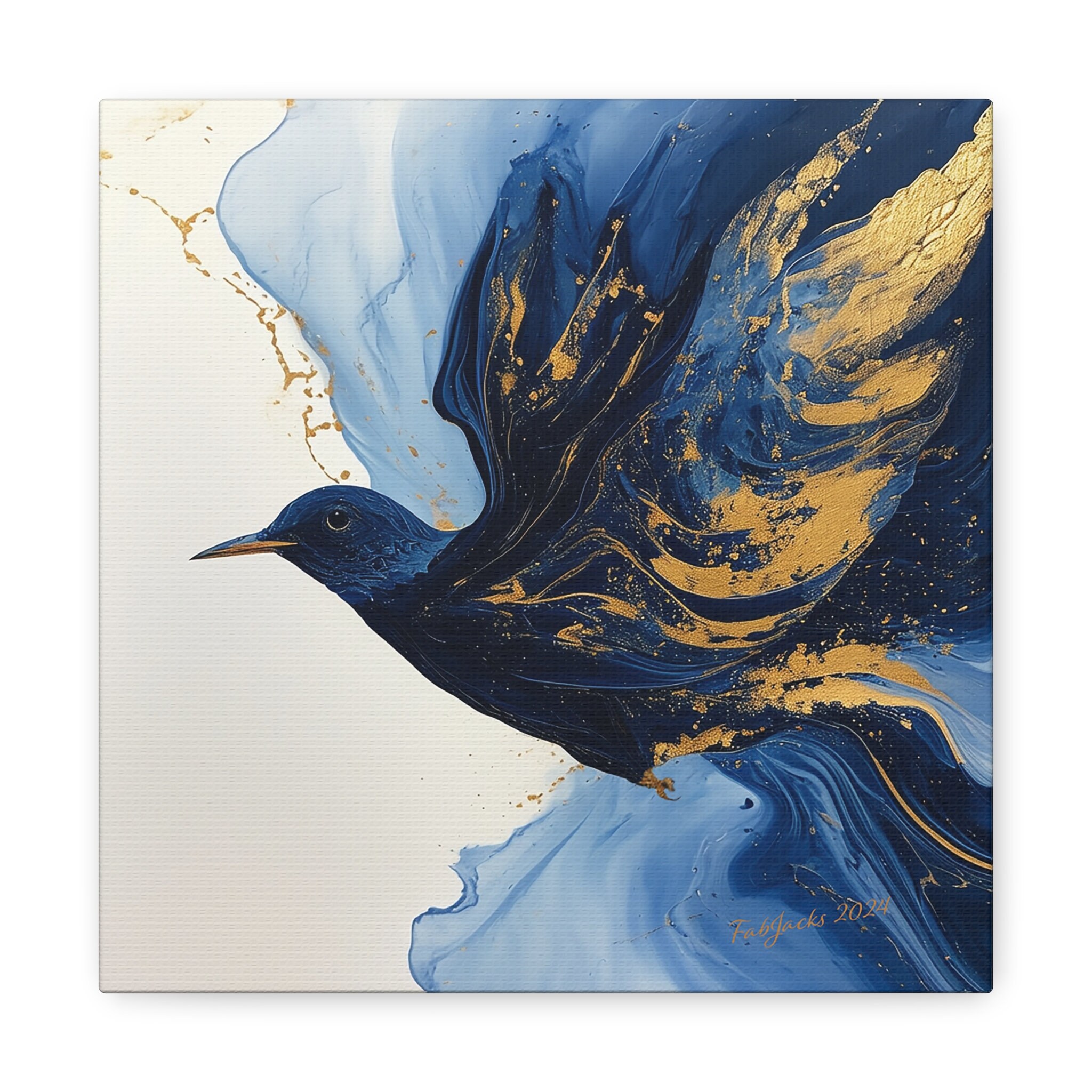 Skyward Canvas Gallery Wrap: original art, shades of blue with golden accents printed on high quality home decor. Great gift for bird lovers
