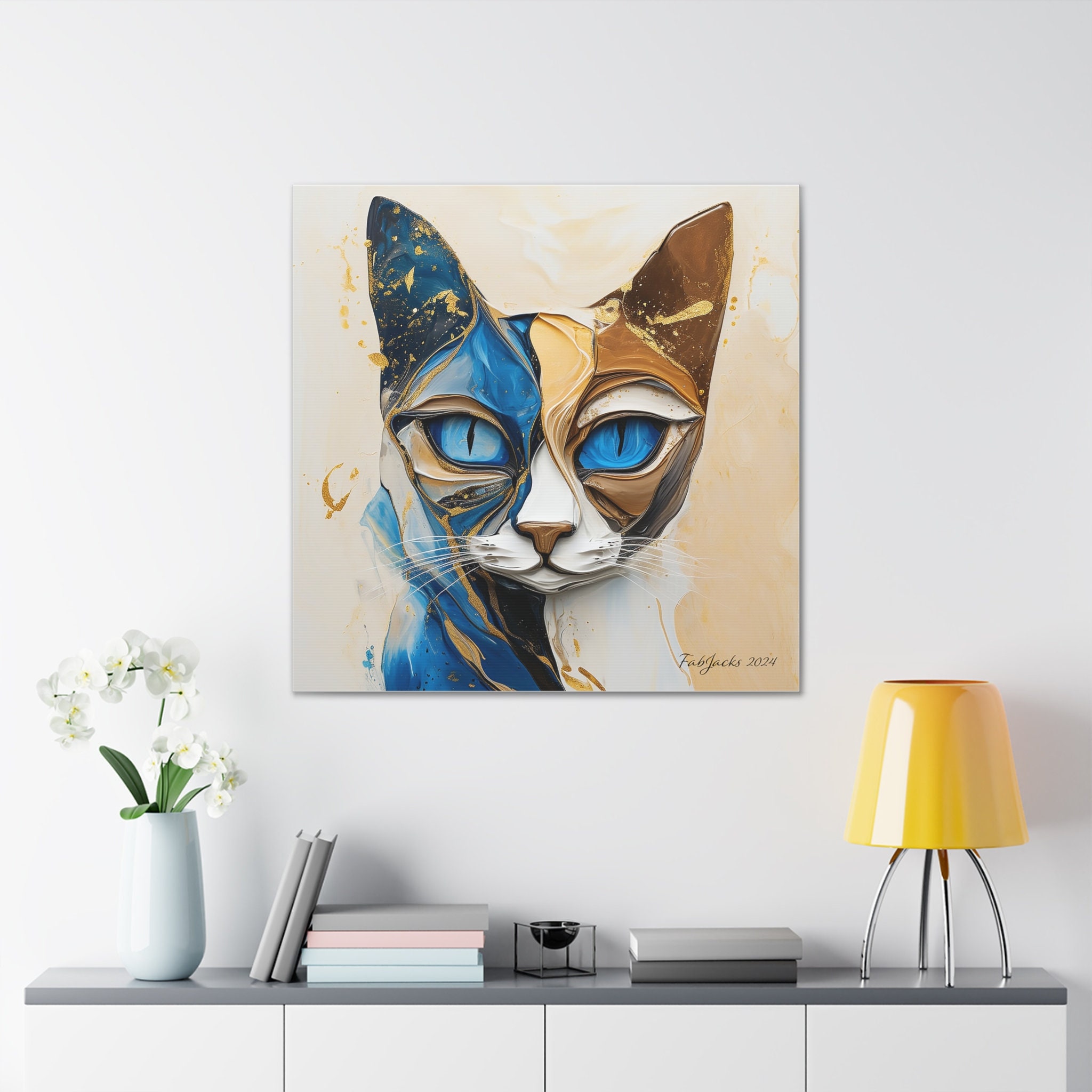 Celestial Cat Canvas Gallery Wraps, original art printed on high quality home decor. Great as a gift for cat lovers.