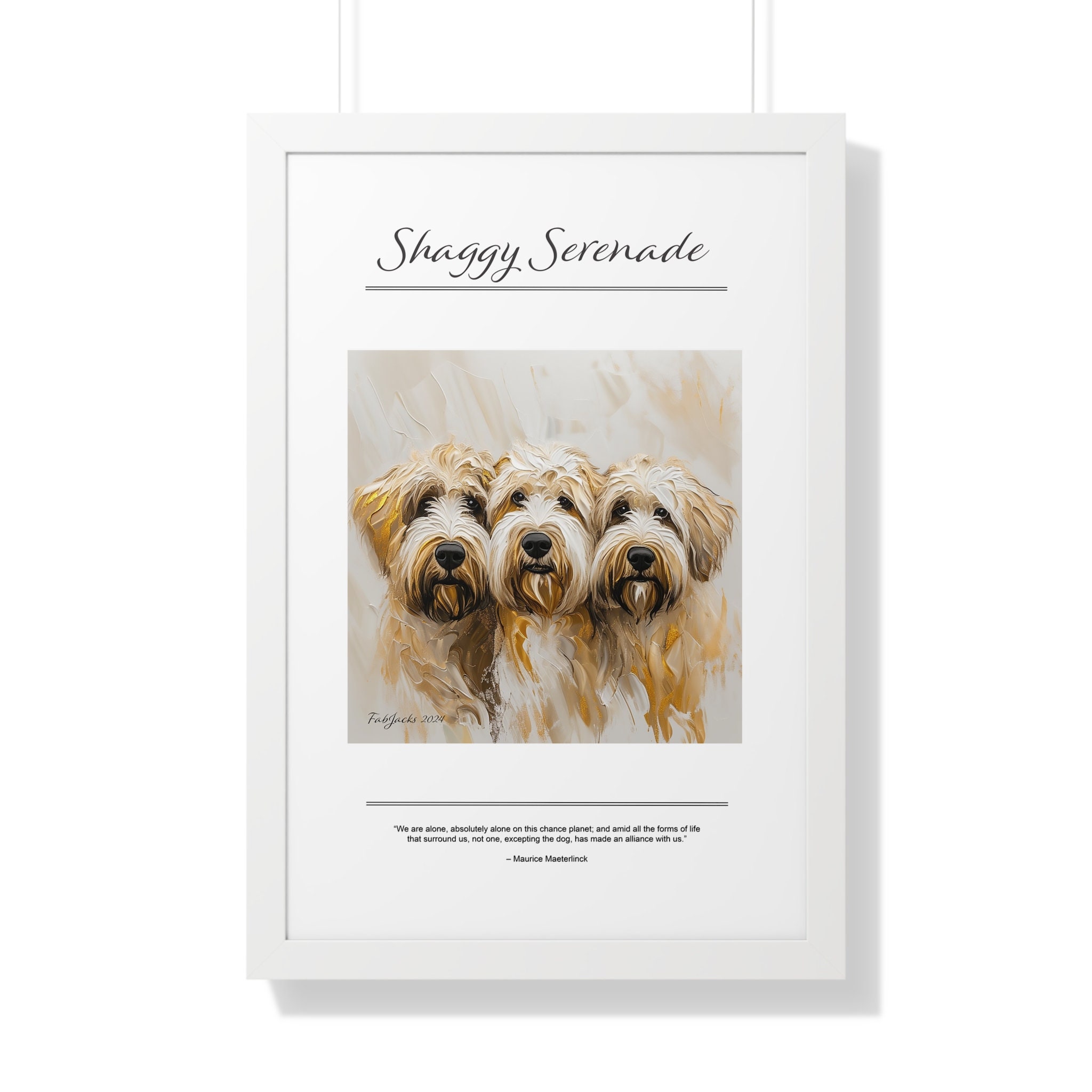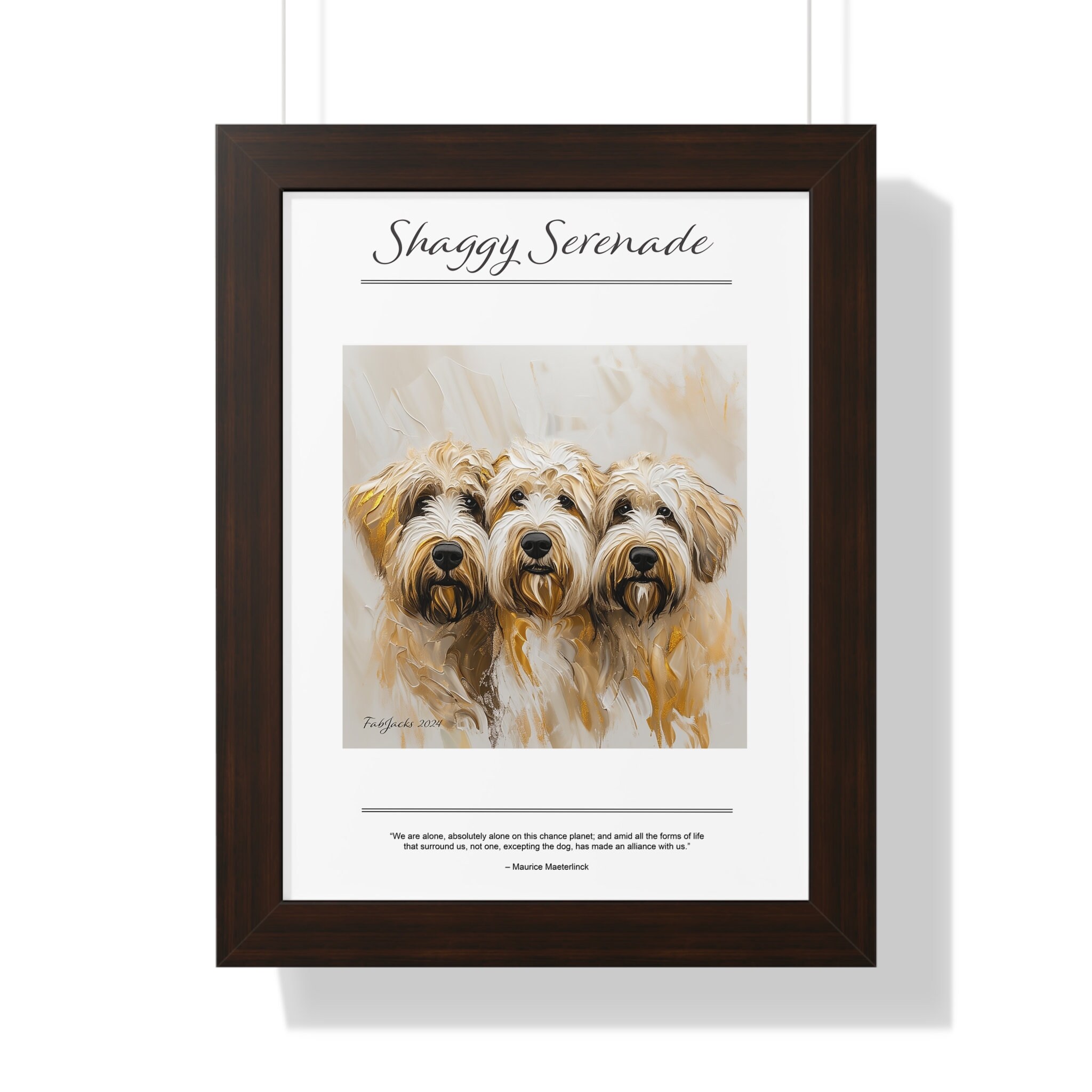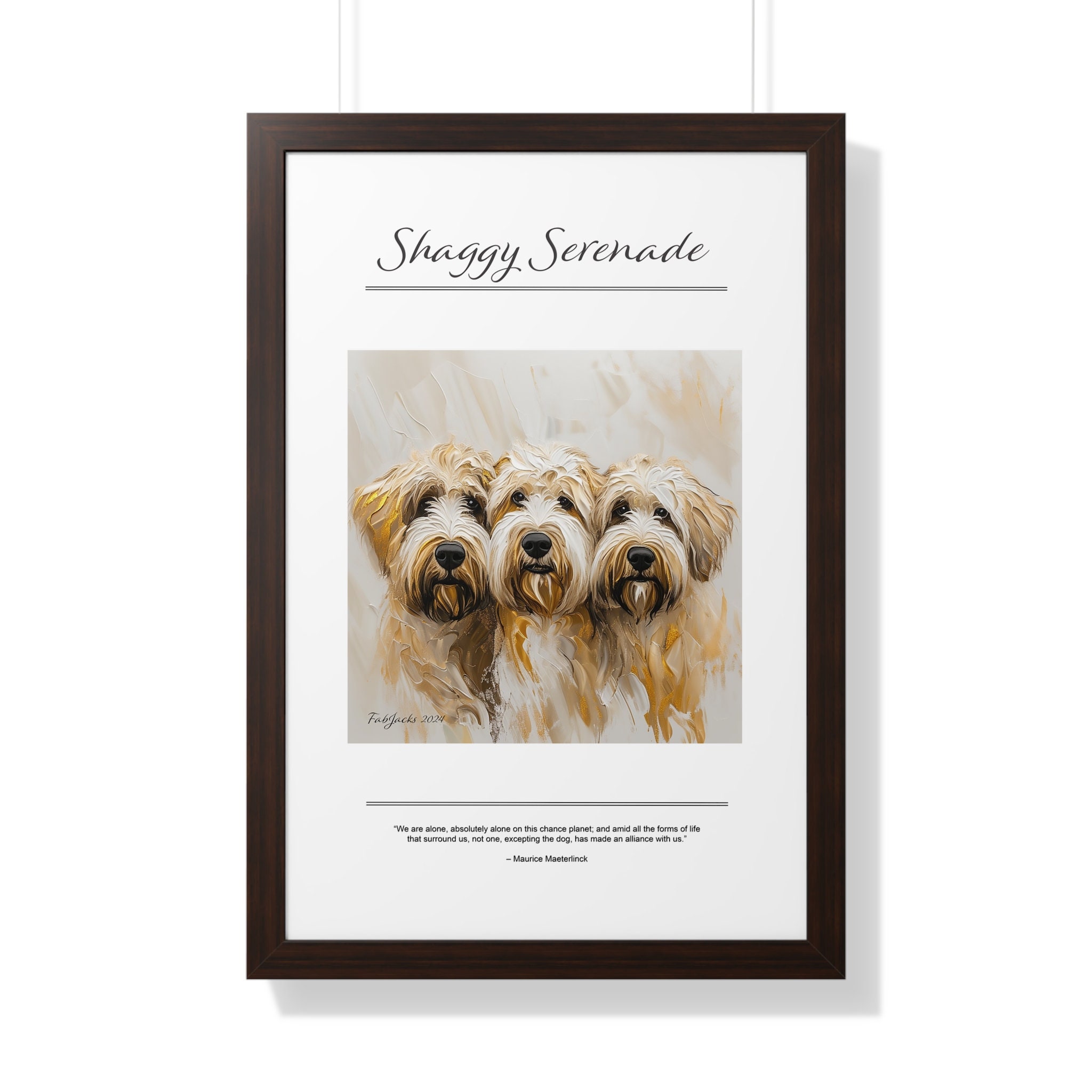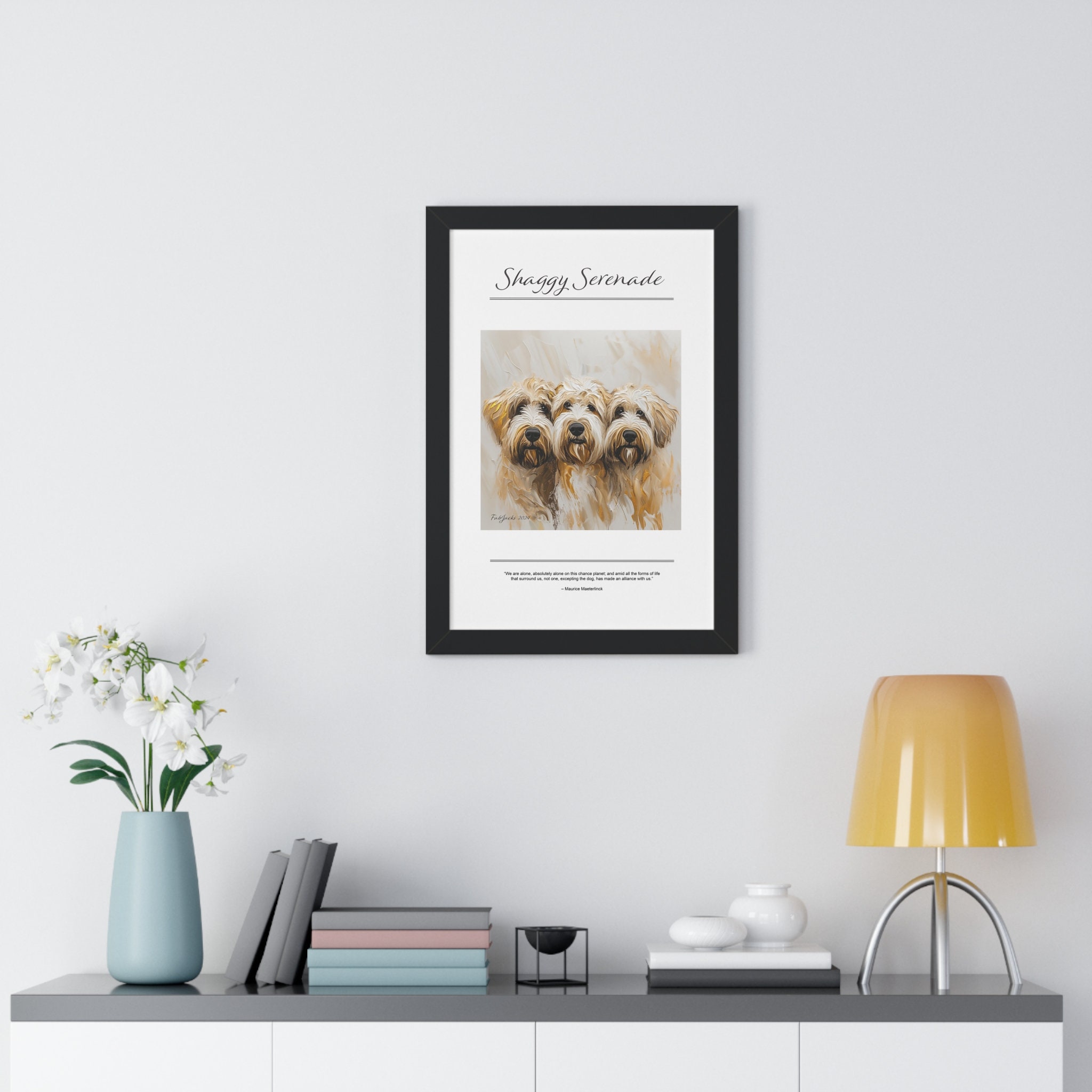 Shaggy Serenade Framed Vertical Poster, original art printed on high quality artist paper, framed in white, black or walnut, a great gift.