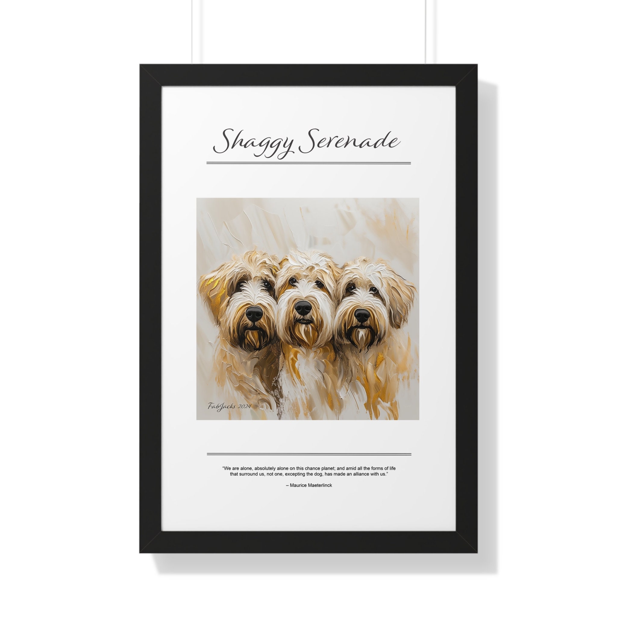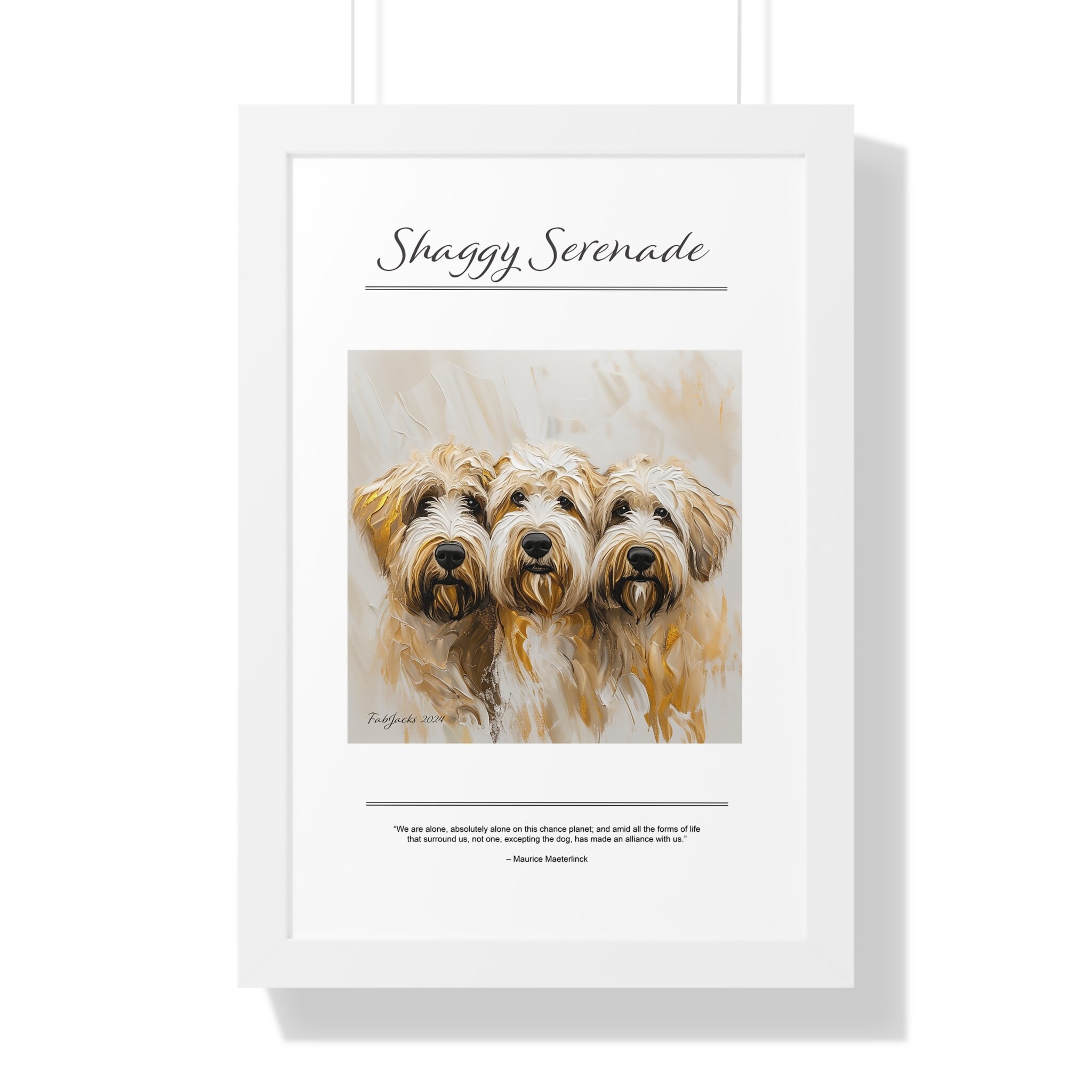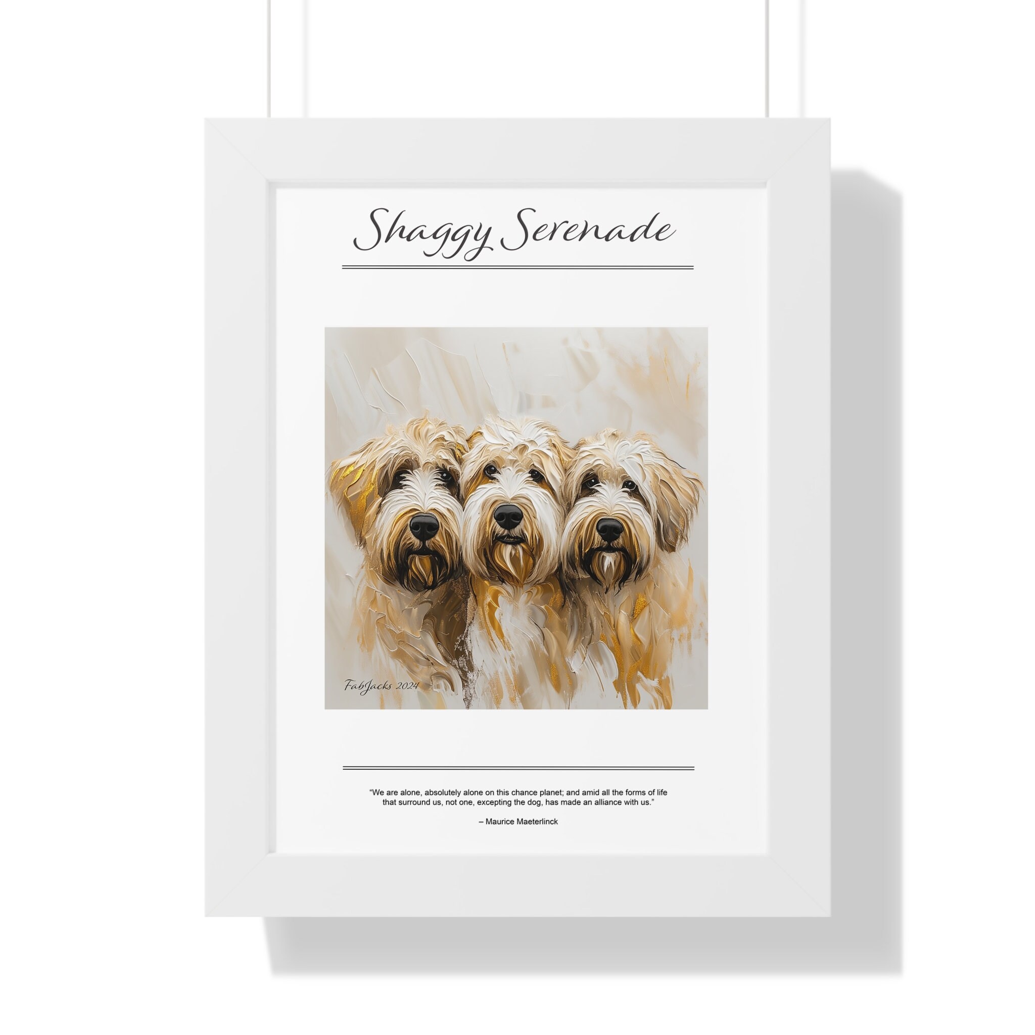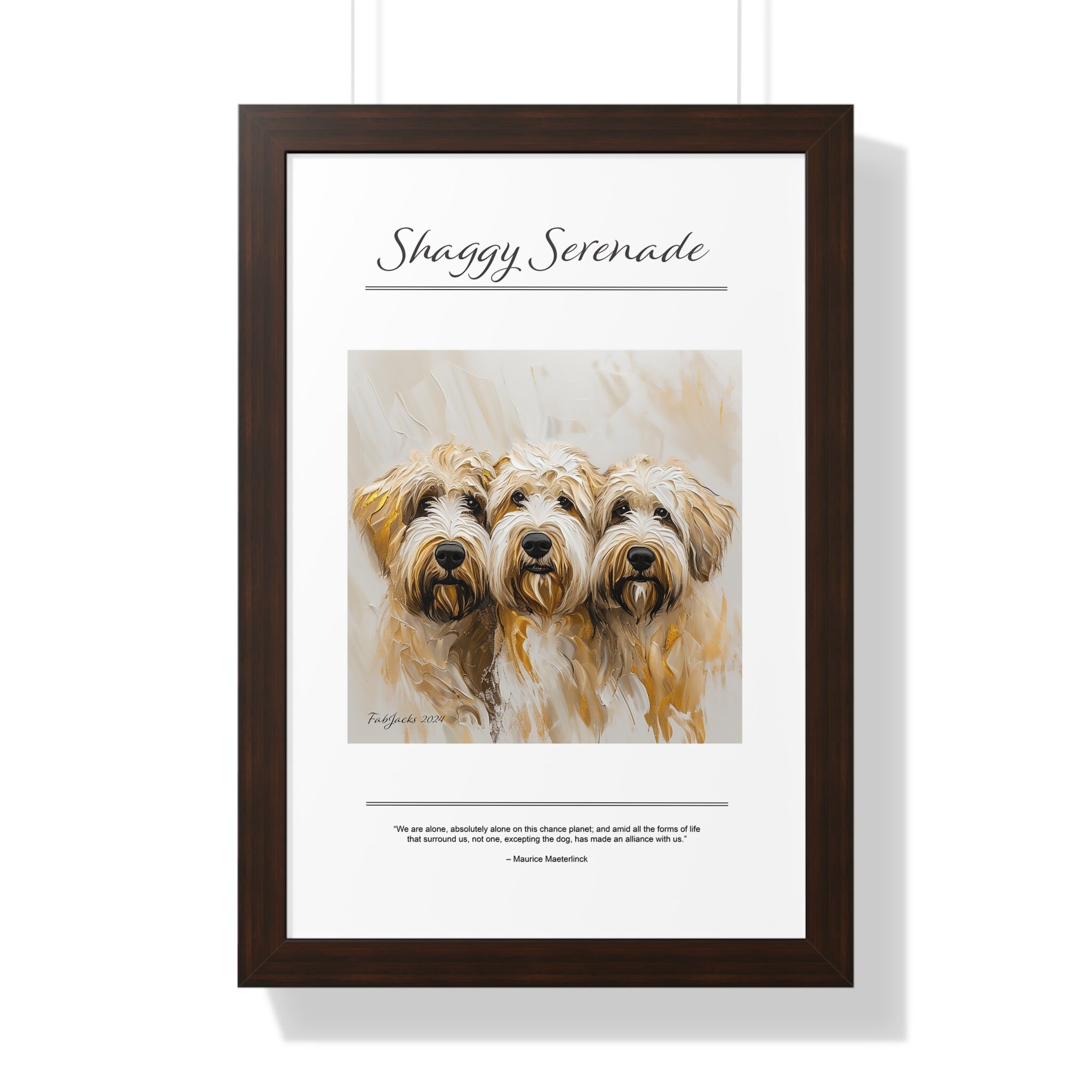 Shaggy Serenade Framed Vertical Poster, original art printed on high quality artist paper, framed in white, black or walnut, a great gift.