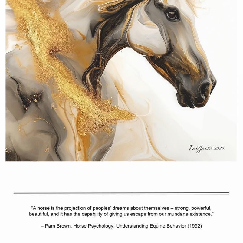 Embrace the beauty of Equine Elegance in soft beige and honey tones with gold accents, created in the fluid art style.