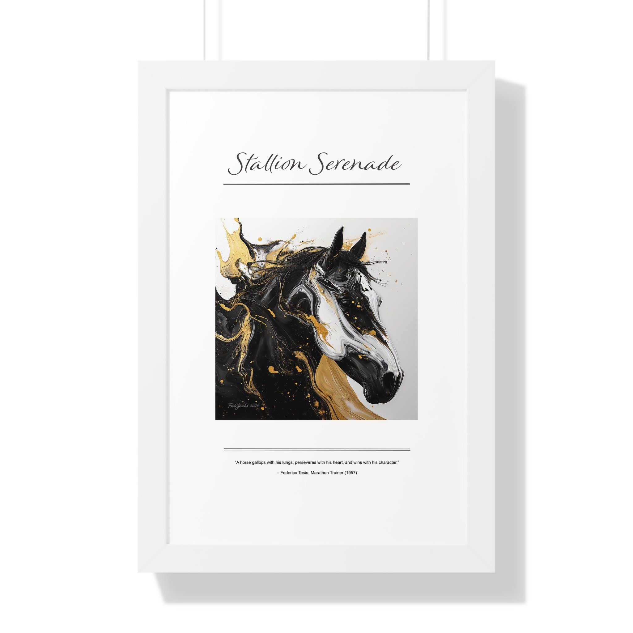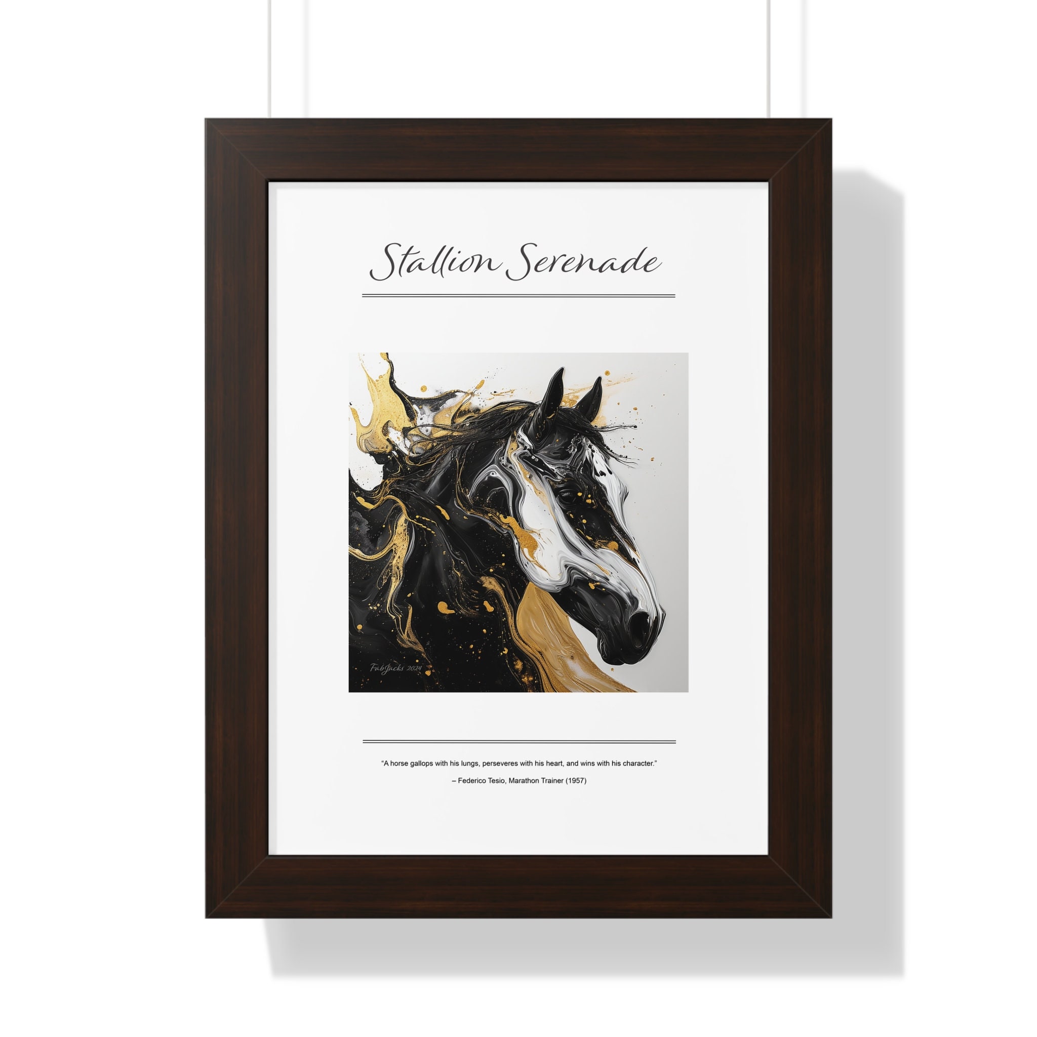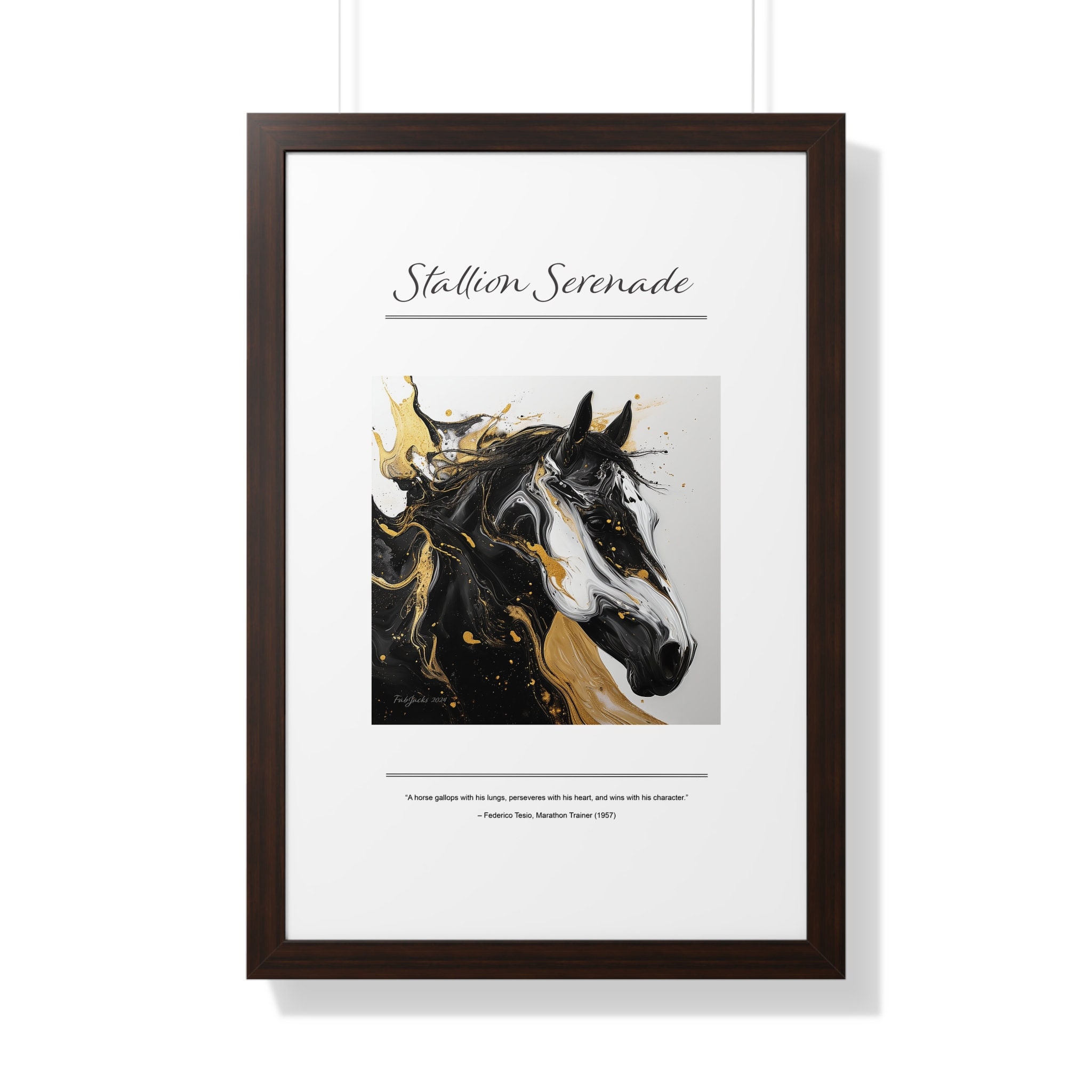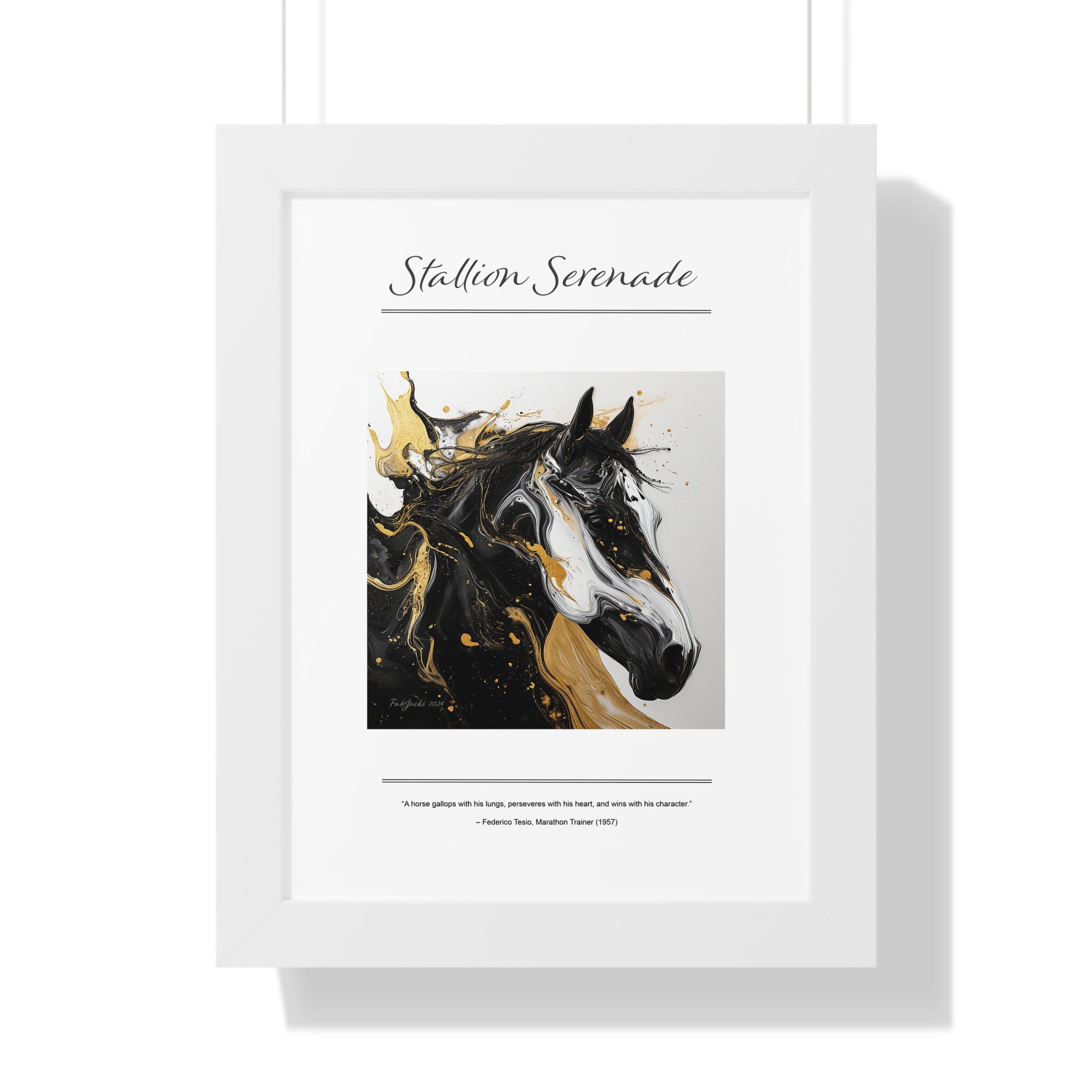 Stallion Serenade Framed Vertical Poster, original art printed on high quality artist paper, framed in white, black or walnut