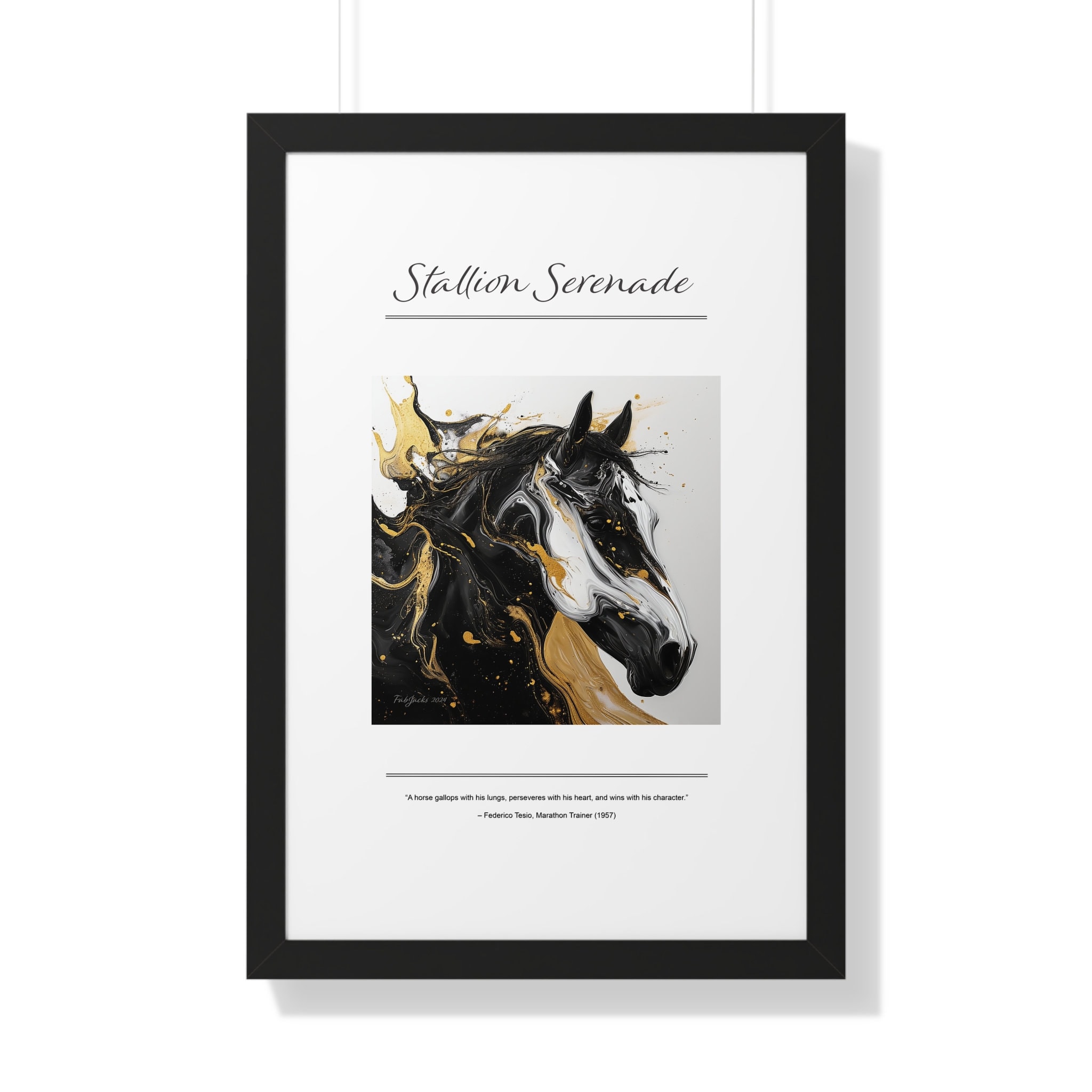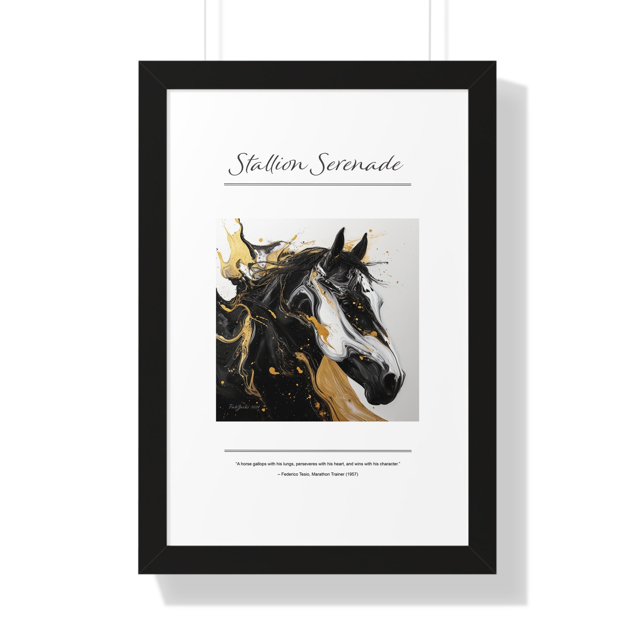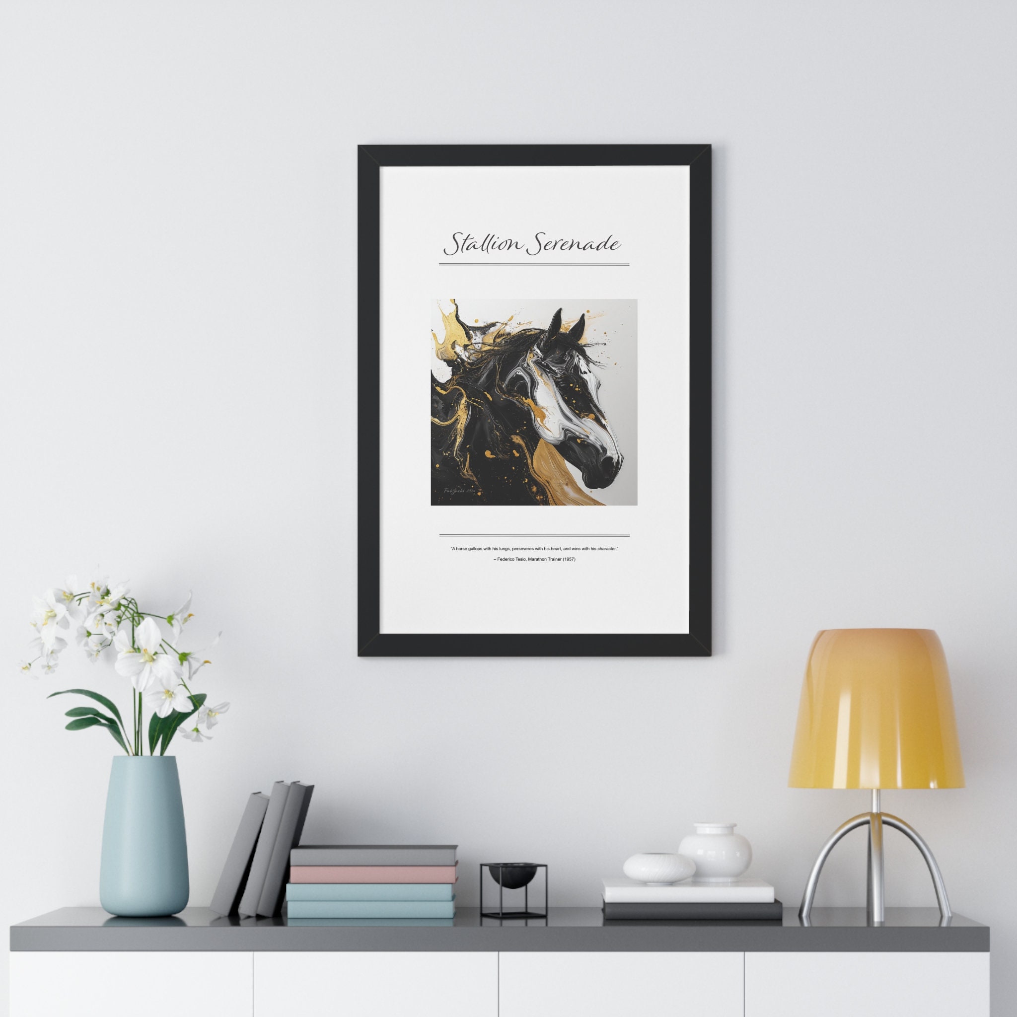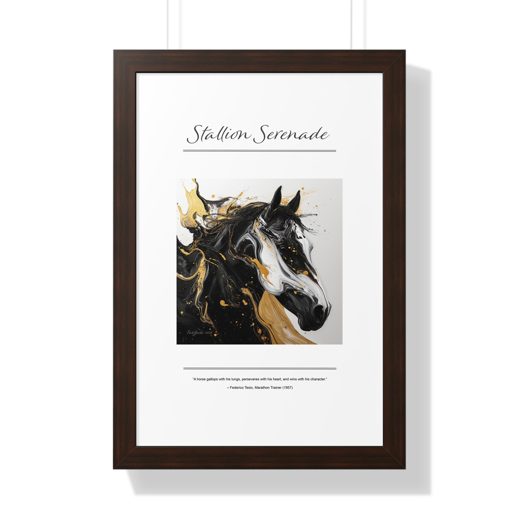 Stallion Serenade Framed Vertical Poster, original art printed on high quality artist paper, framed in white, black or walnut