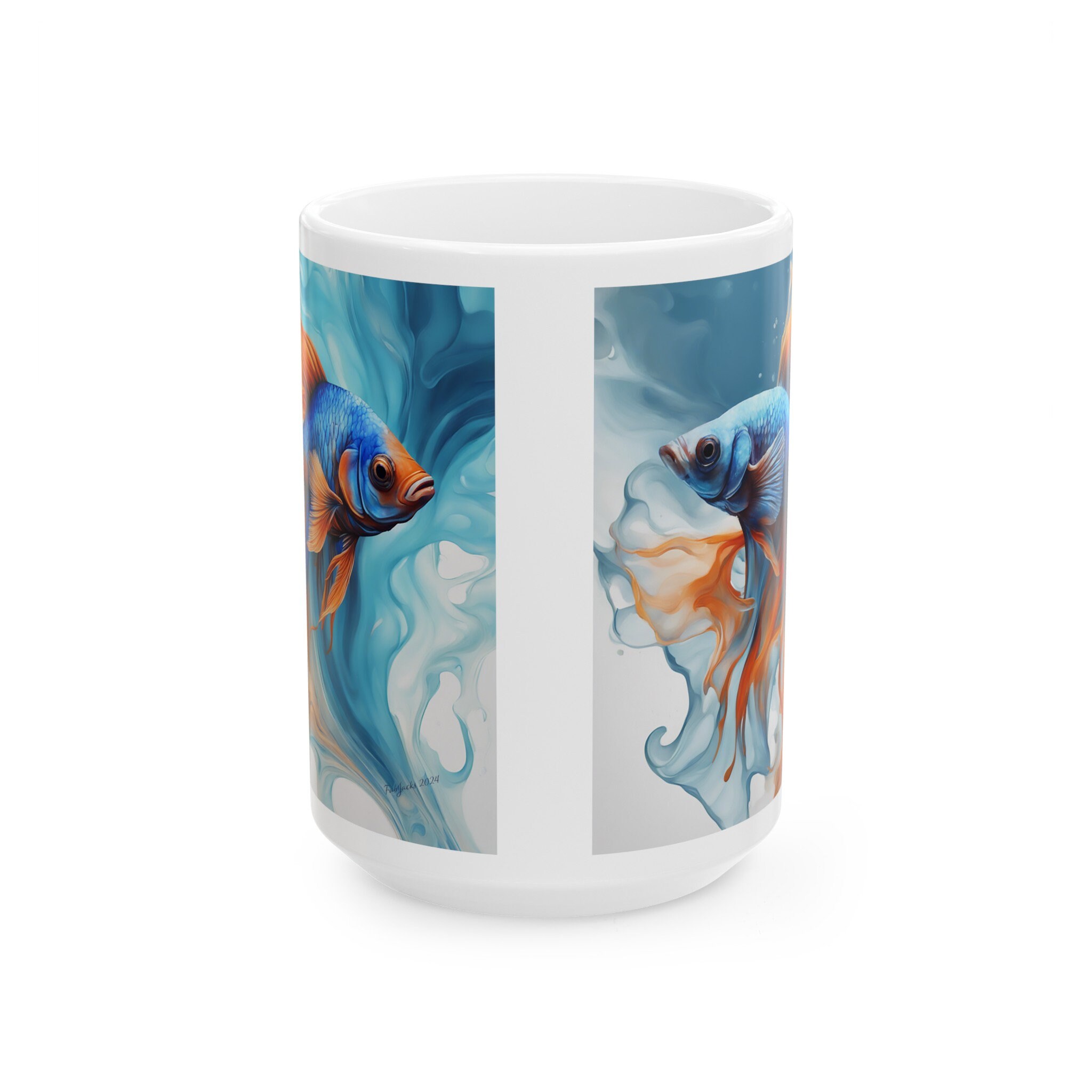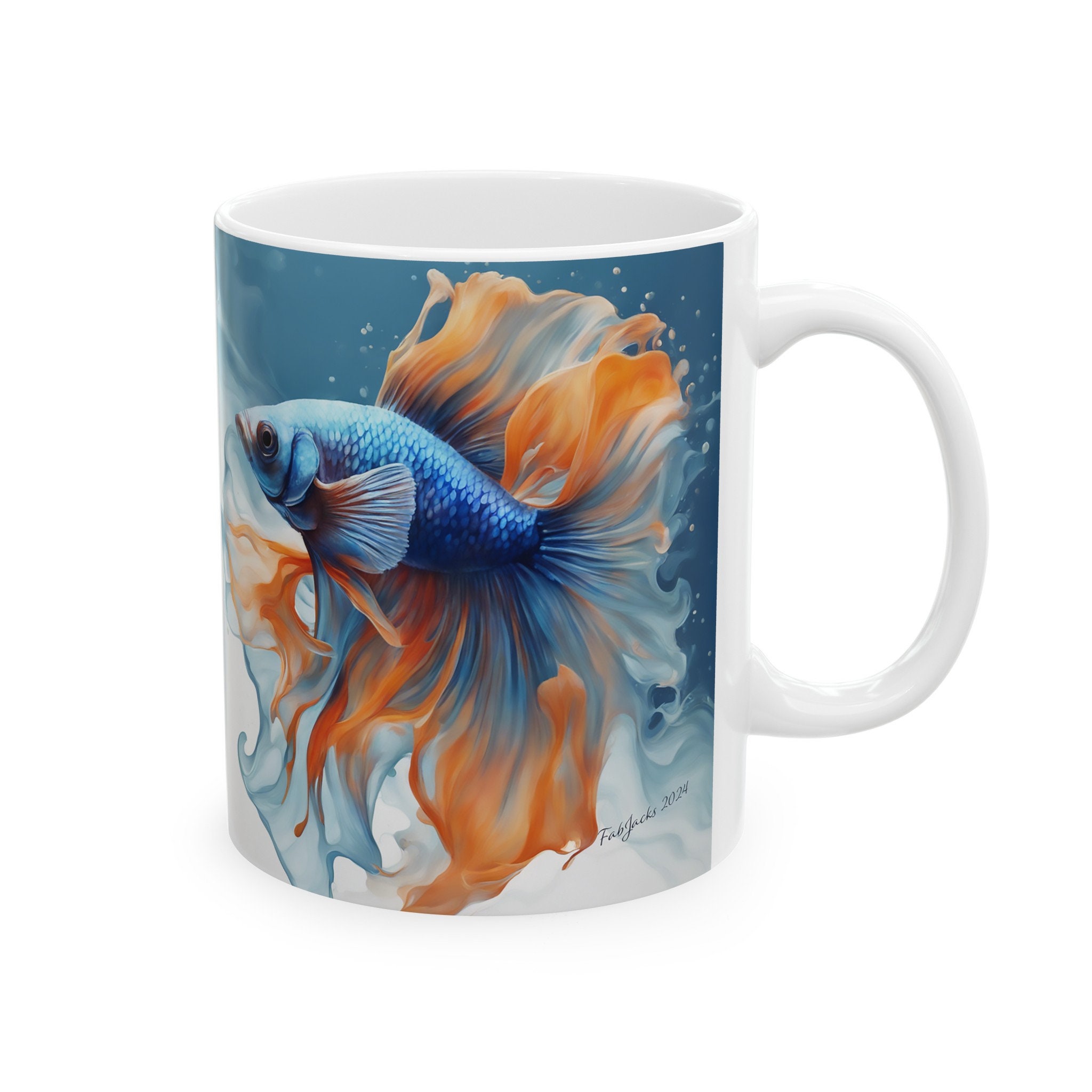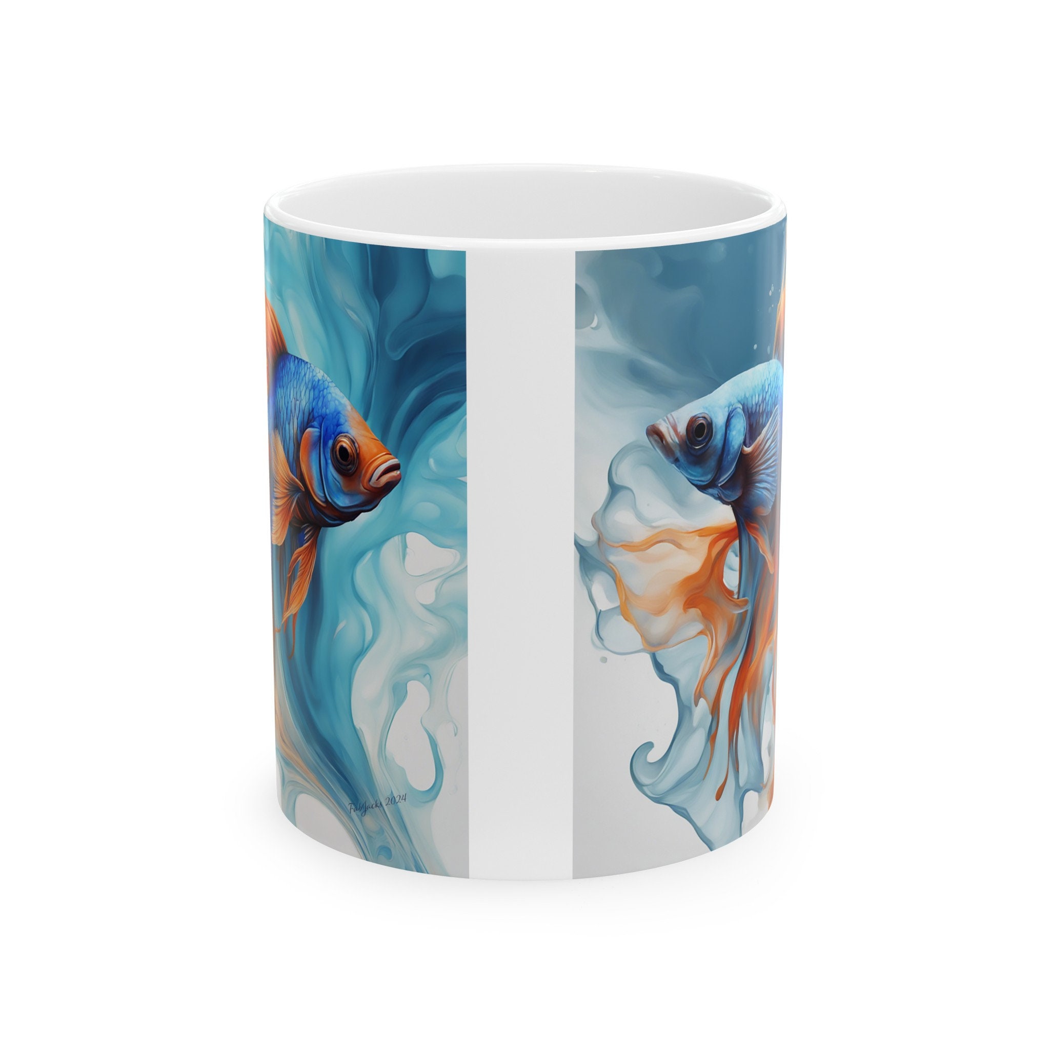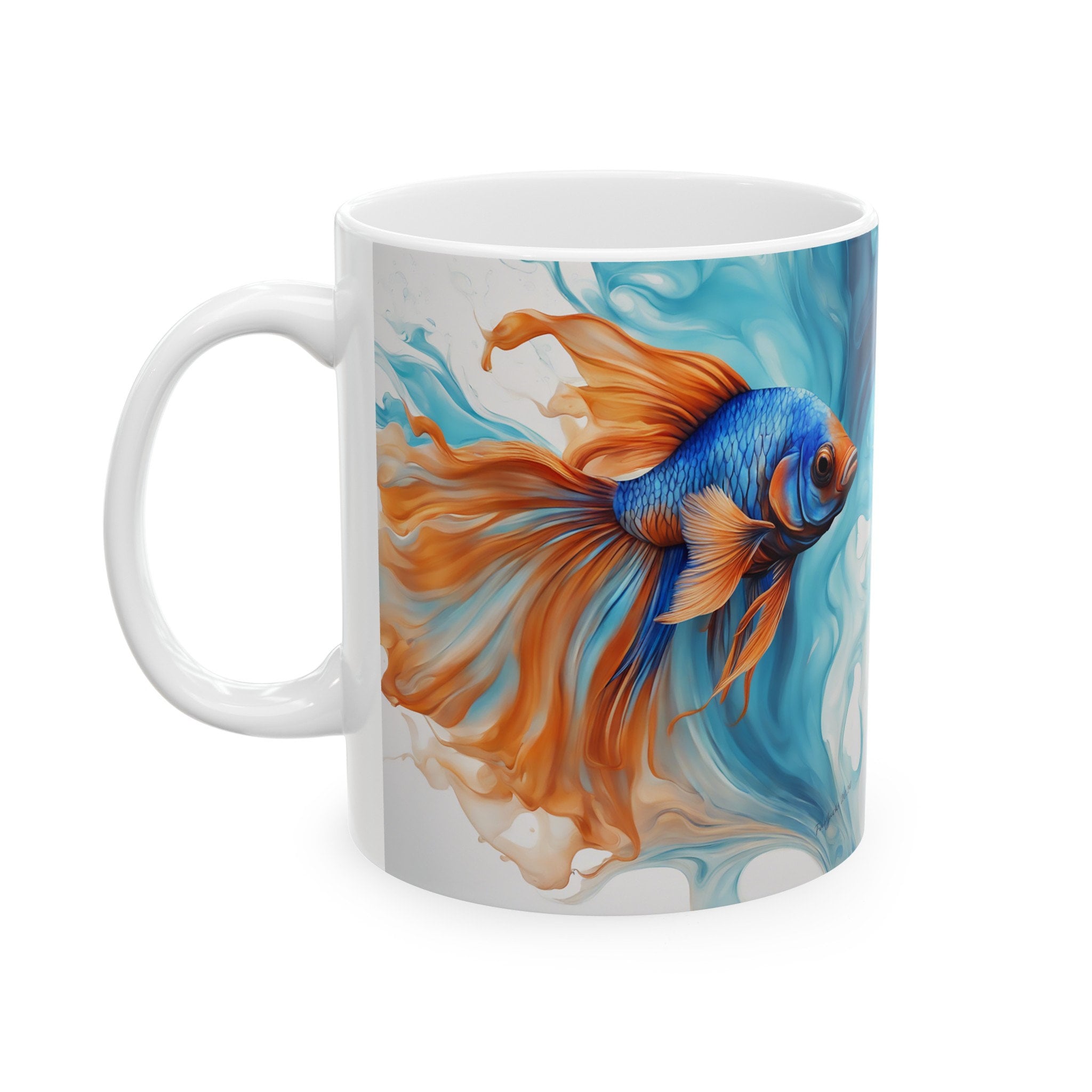 Betta Bliss Ceramic Mug, original vibrant beta fish art printed on high quality home decor. Great as a gift for art and fish lovers.