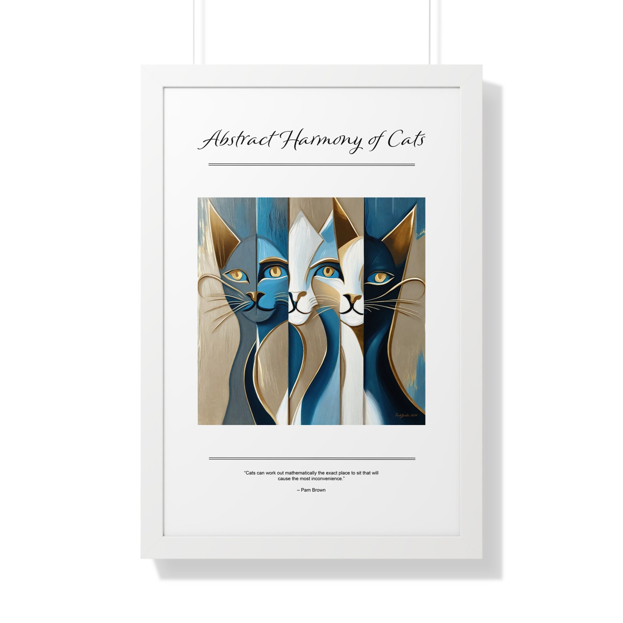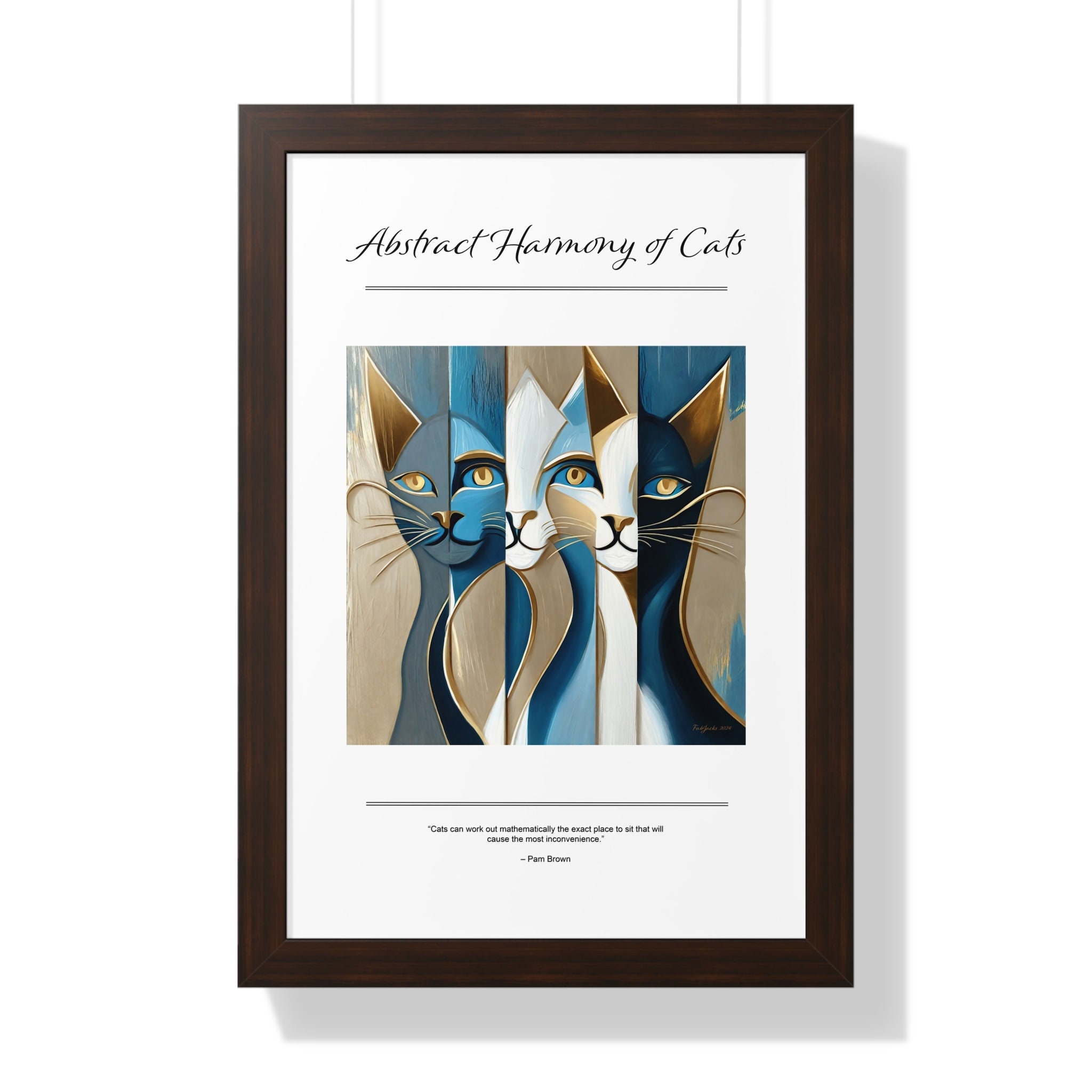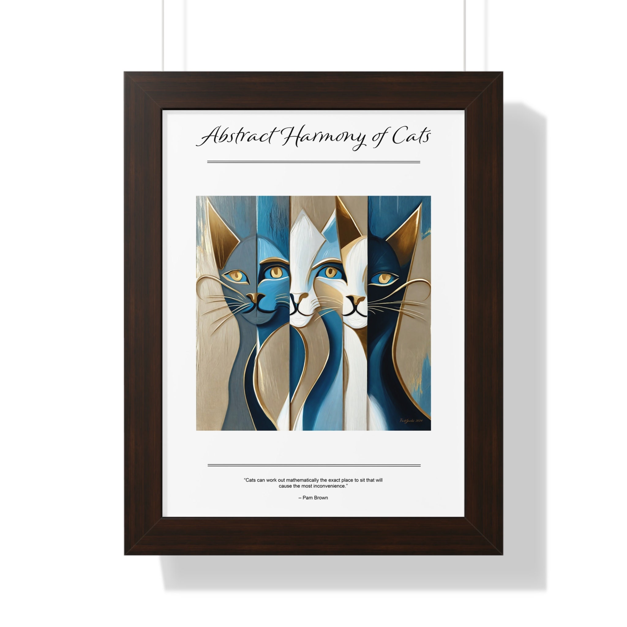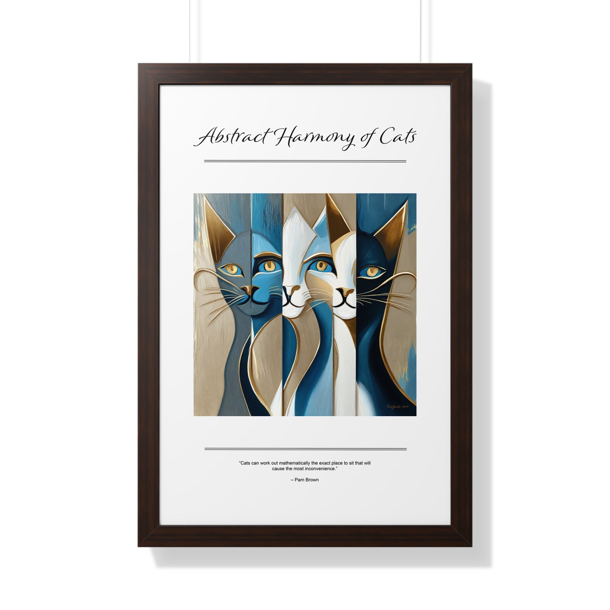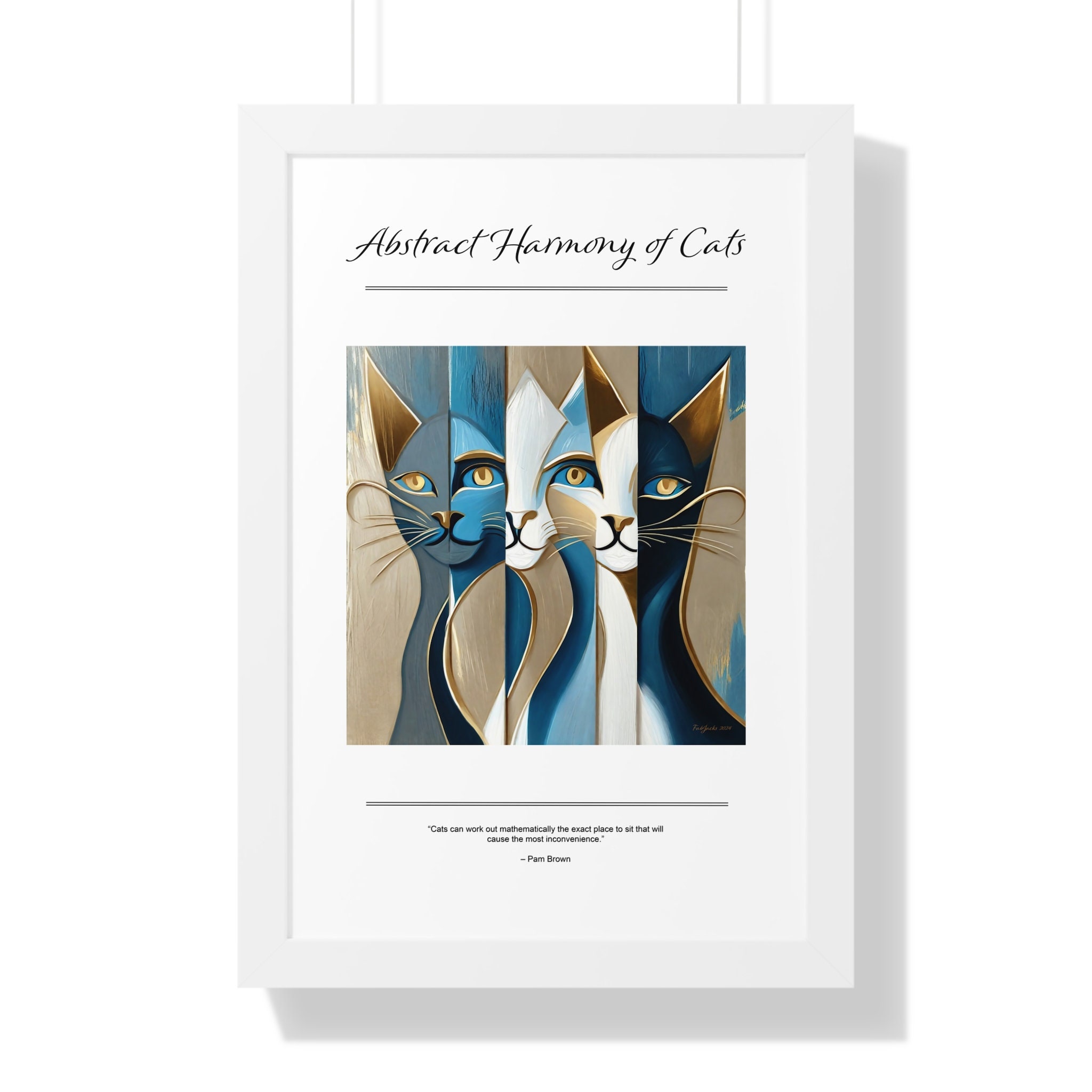 Abstract Harmony of Cats Framed Vertical Poster, original art printed on high quality artist paper, framed in white, black or walnut