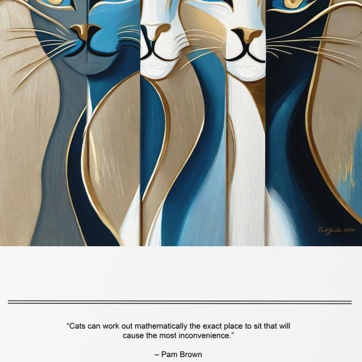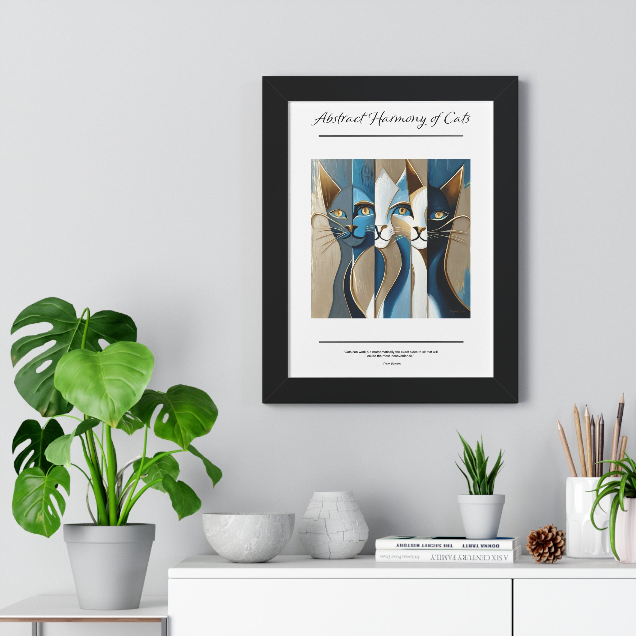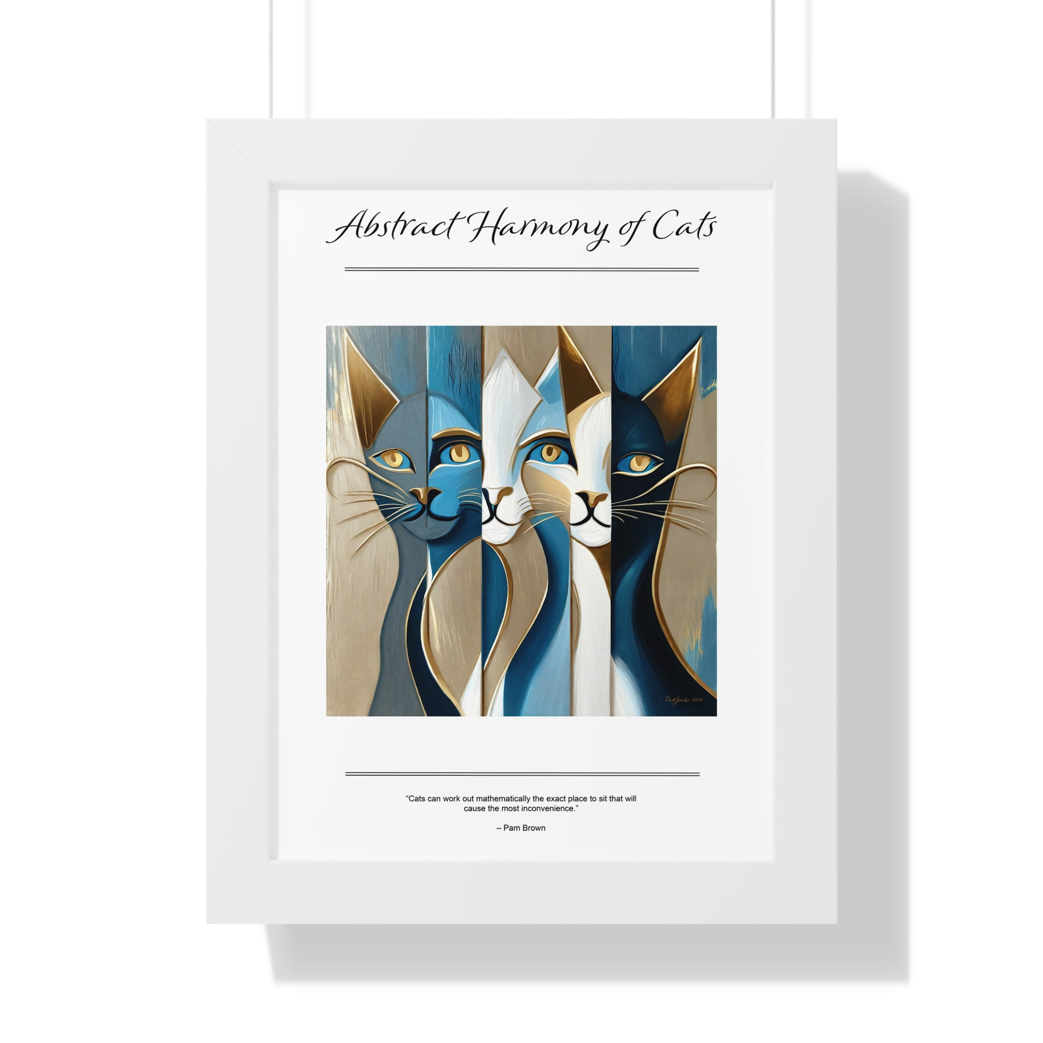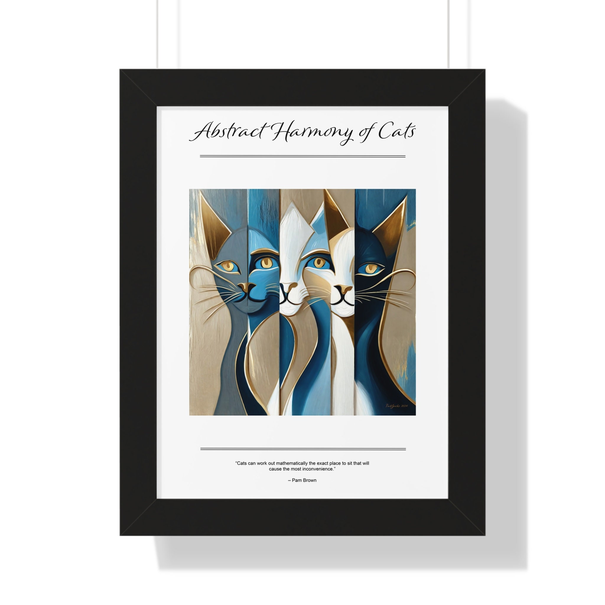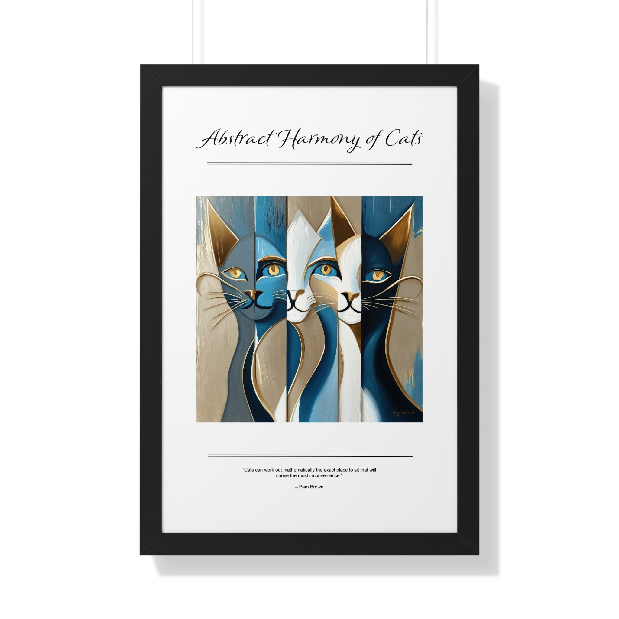 Abstract Harmony of Cats Framed Vertical Poster, original art printed on high quality artist paper, framed in white, black or walnut