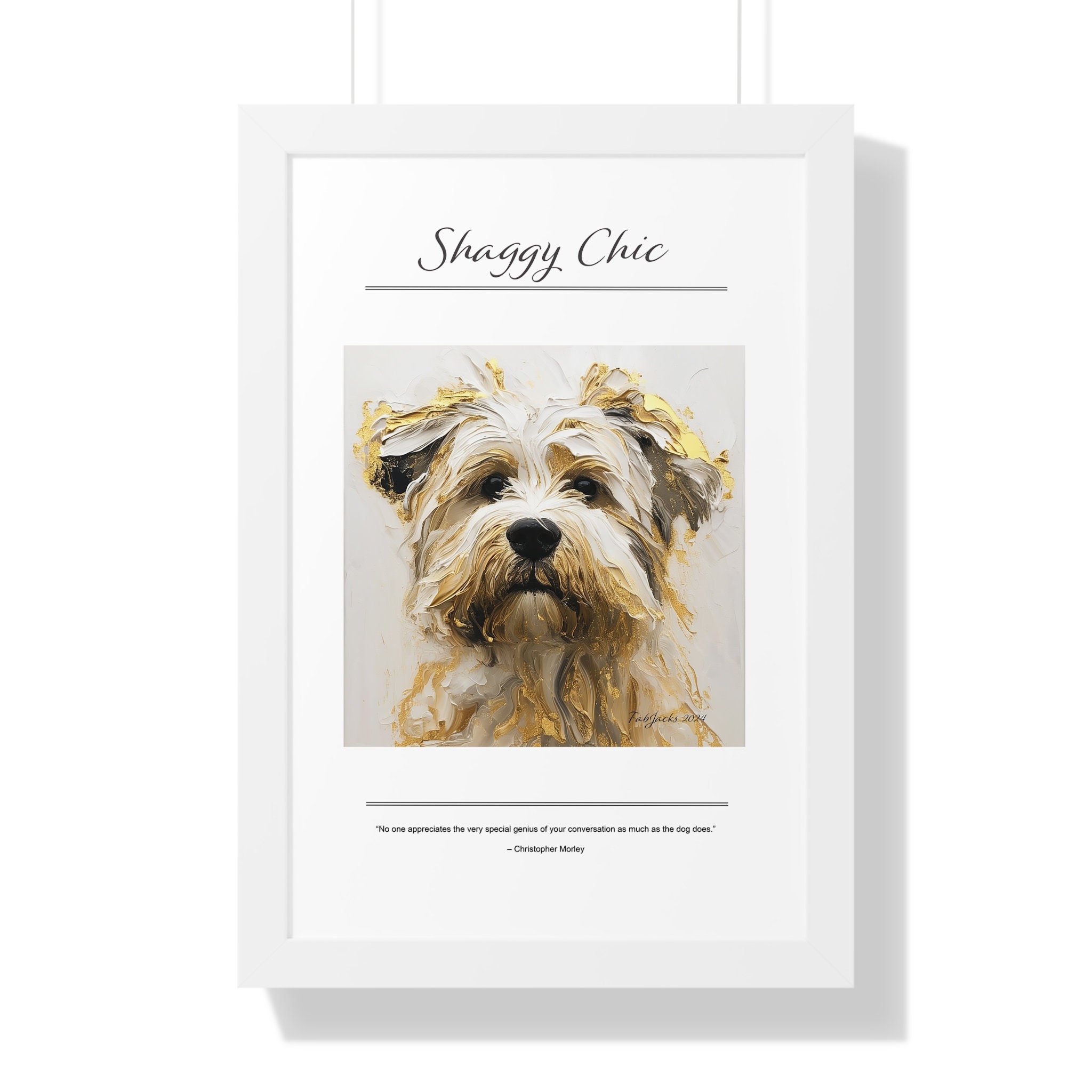 Shaggy Chic Framed Vertical Poster, original art printed on high quality artist paper, framed in white, black or walnut, a great gift.